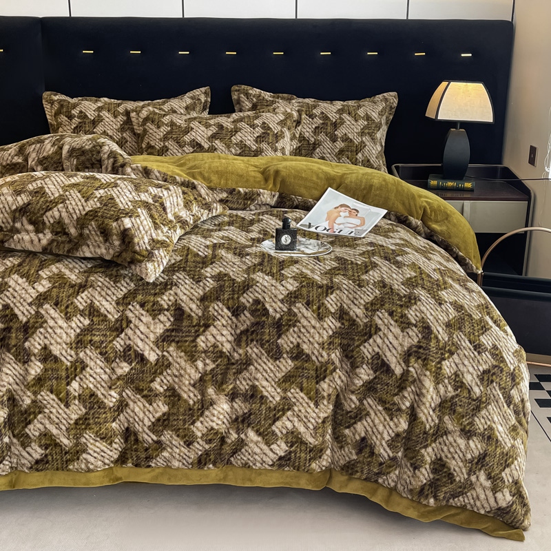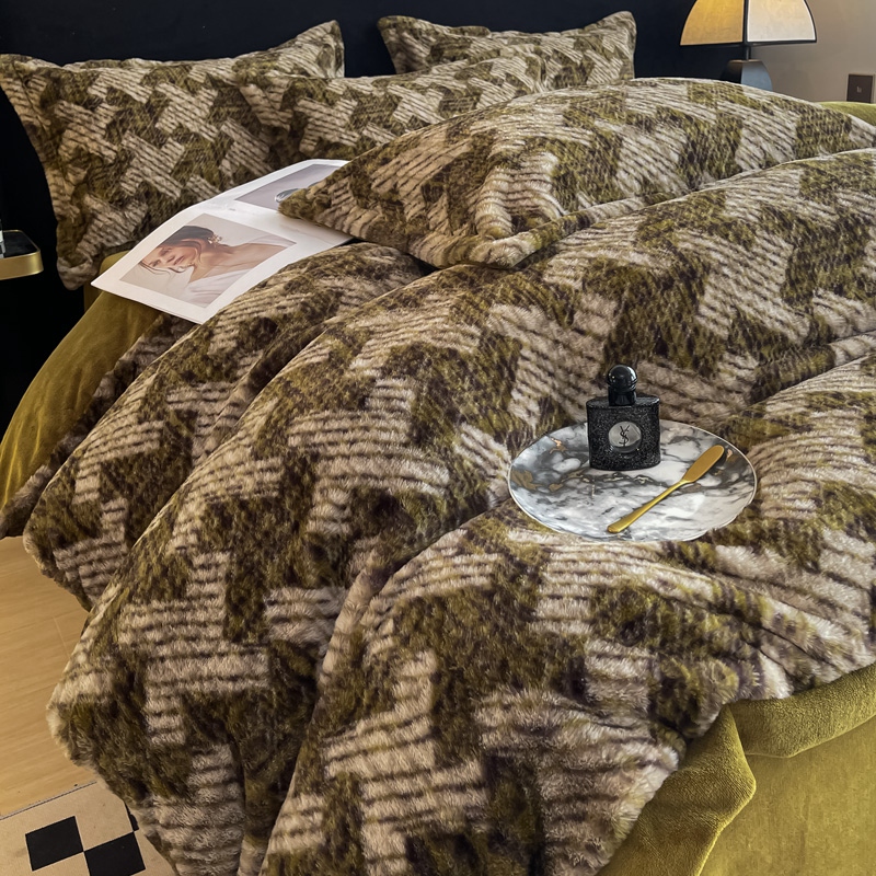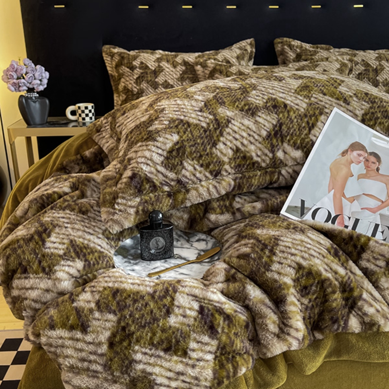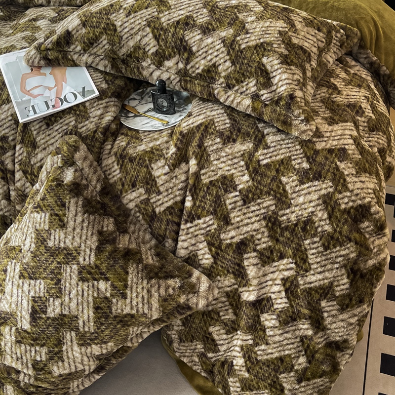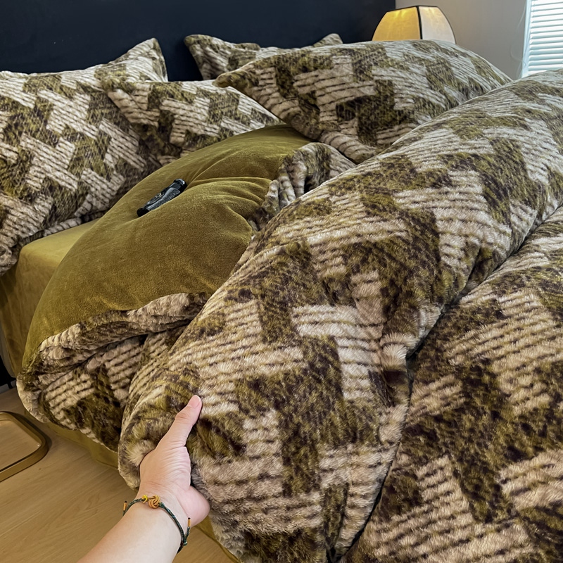 仟网汇 2024新款兔毛绒法式宽边牛奶绒四件套 绿影阑珊