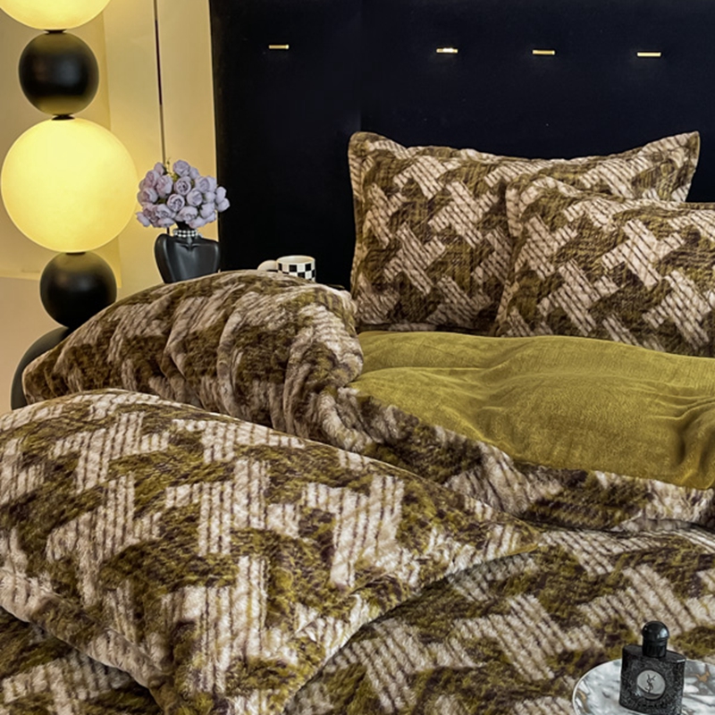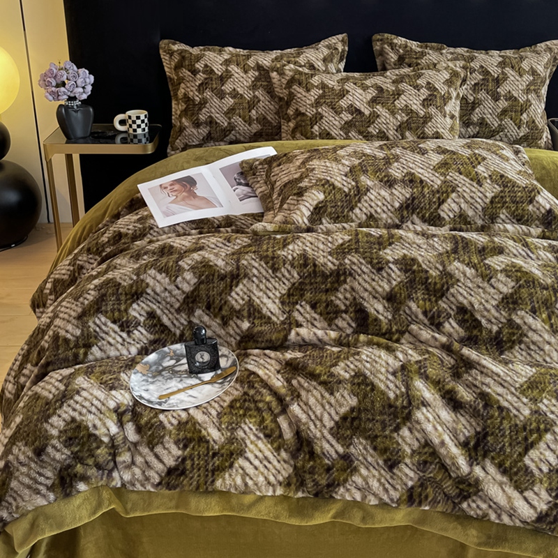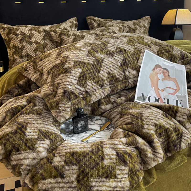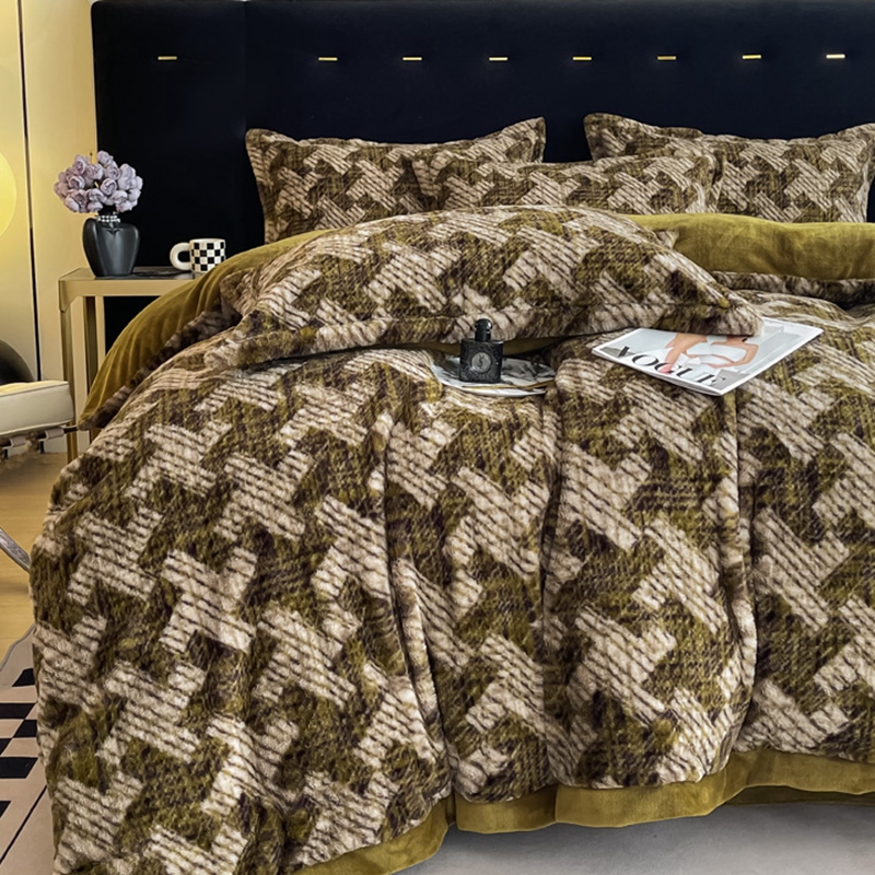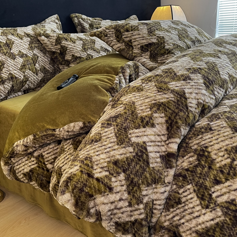 仟网汇 2024新款兔毛绒法式宽边牛奶绒四件套 绿影阑珊