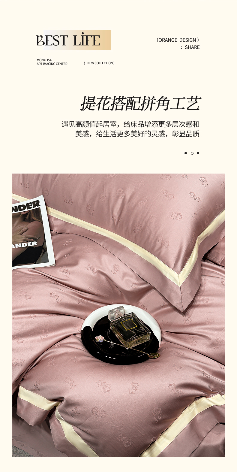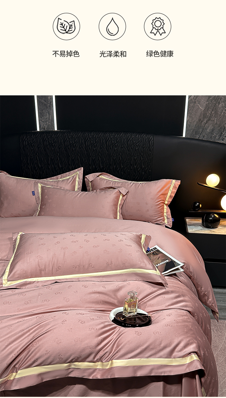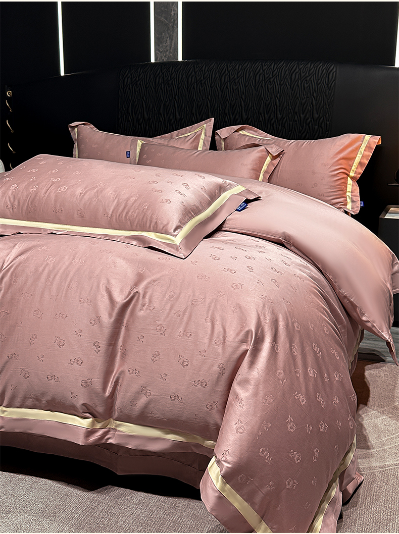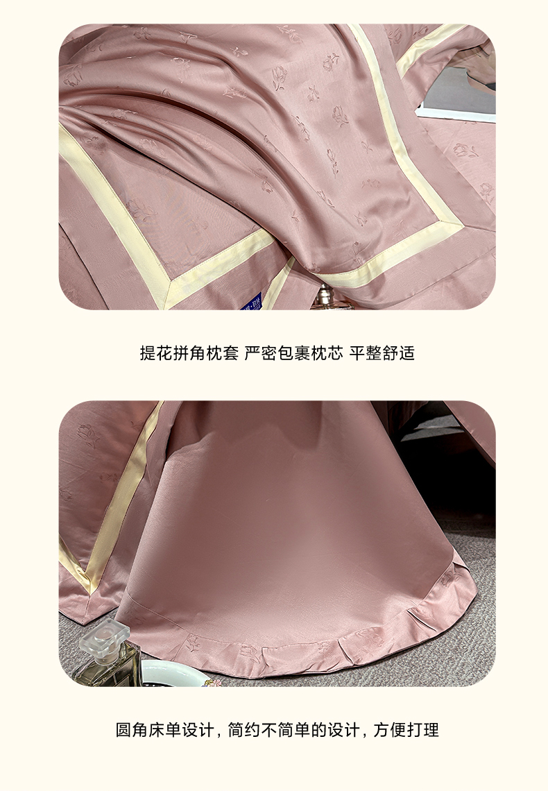 商品名称:2024新款轻奢双拼角全棉提花四件套 恋恋花语-樱花粉