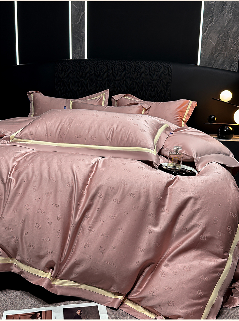 2024新款轻奢双拼角全棉提花四件套 恋恋花语-樱花粉