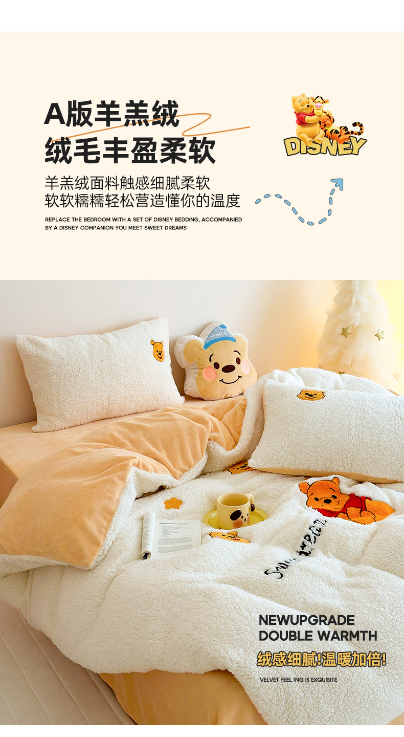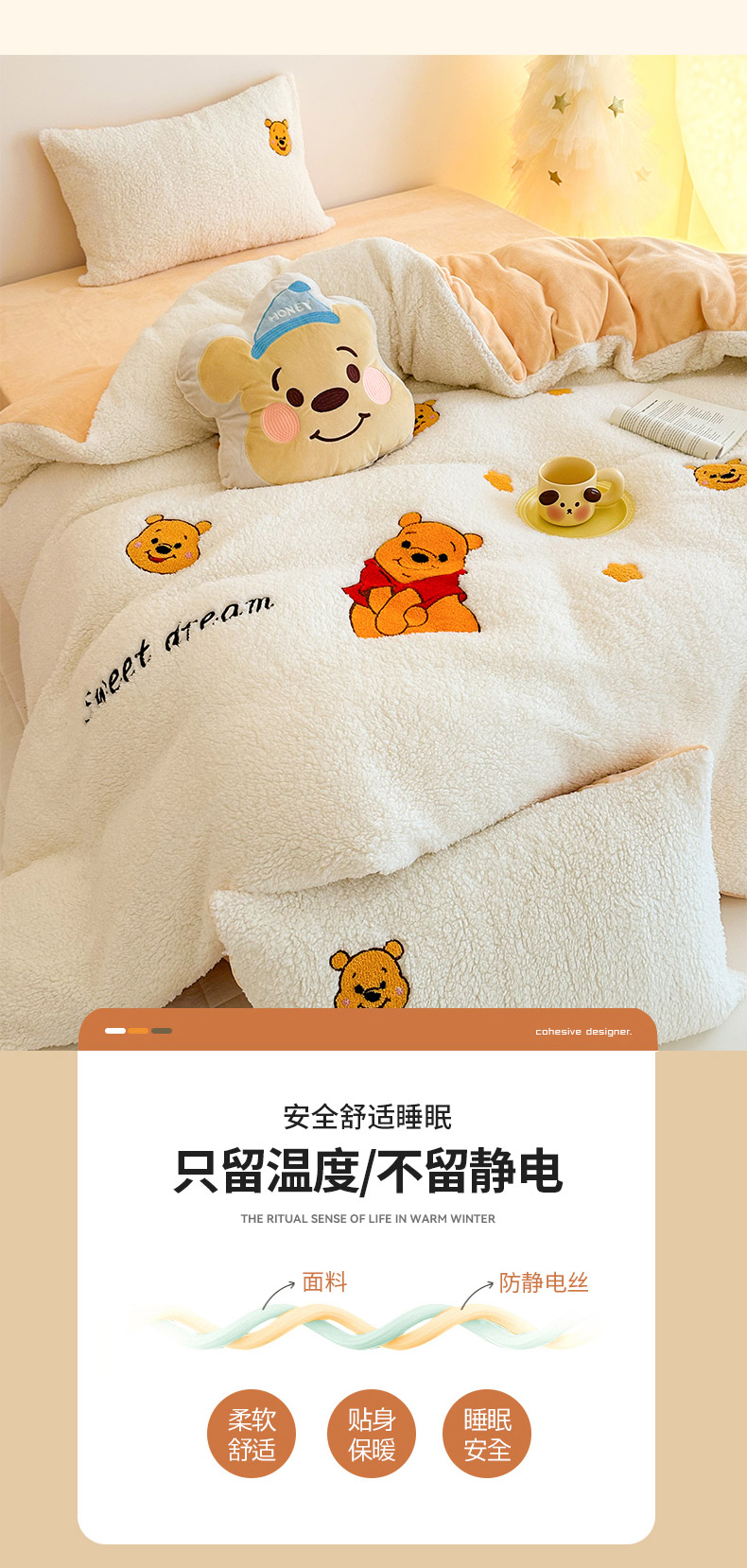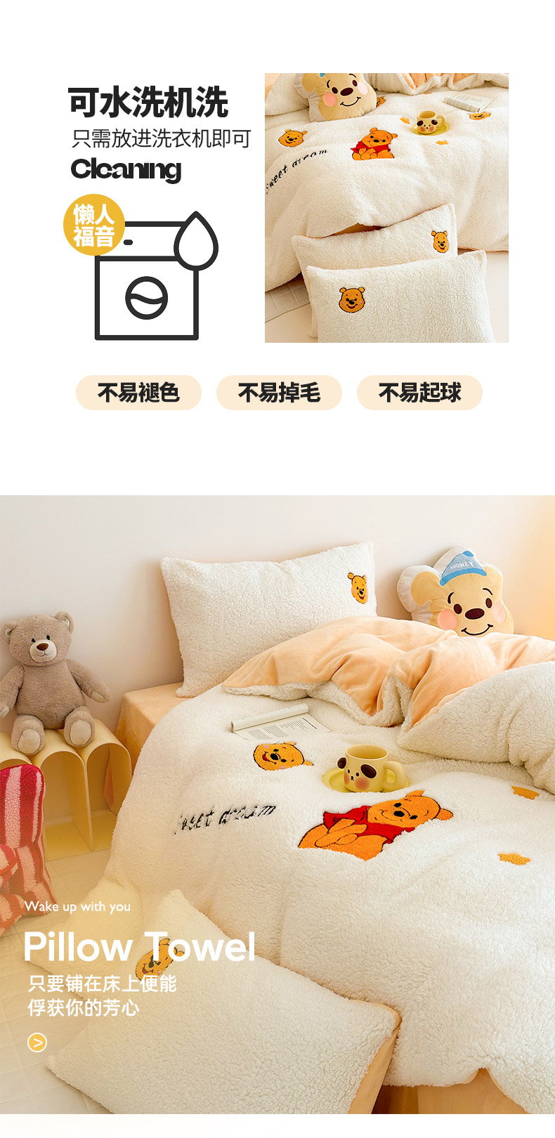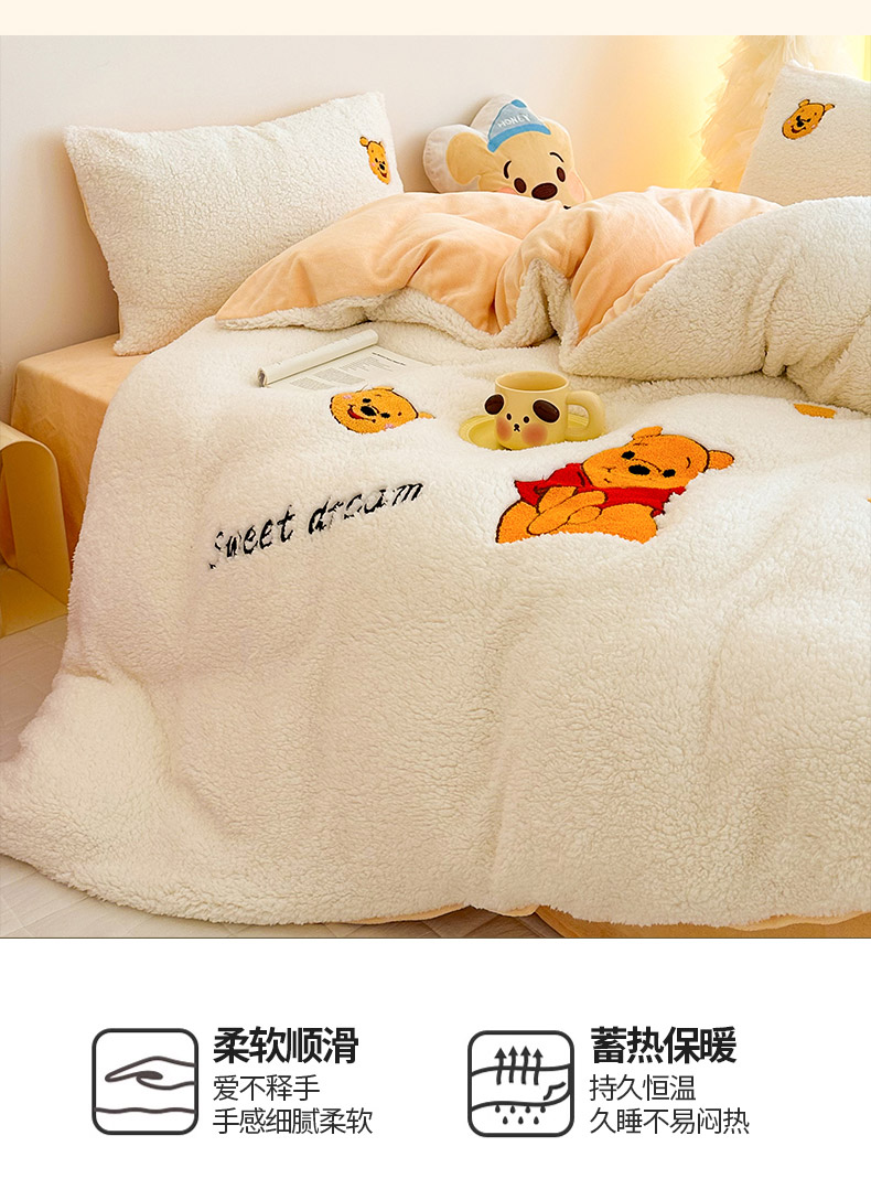 商品名称:乐坊 2024新款羊羔绒毛巾绣牛奶绒四件套冬季加厚保暖 笨笨熊