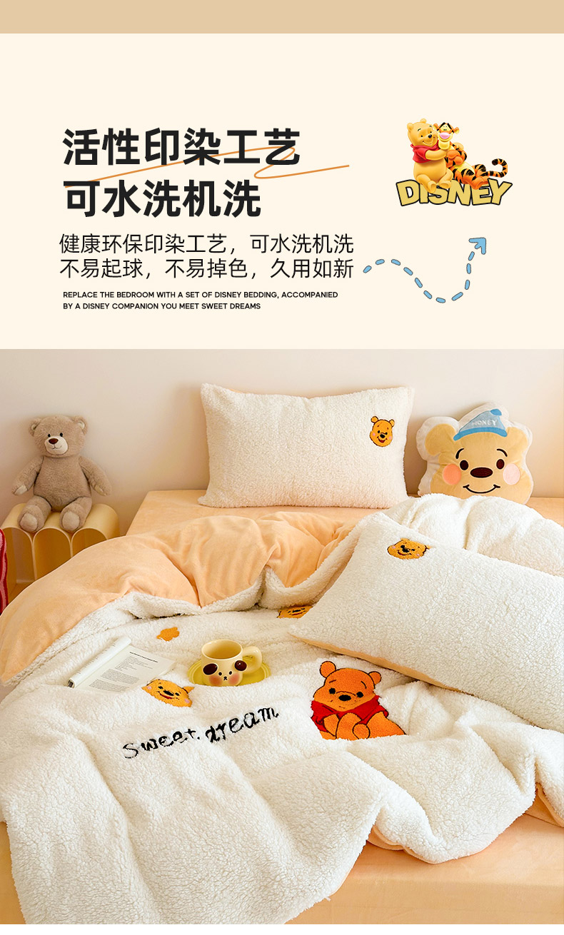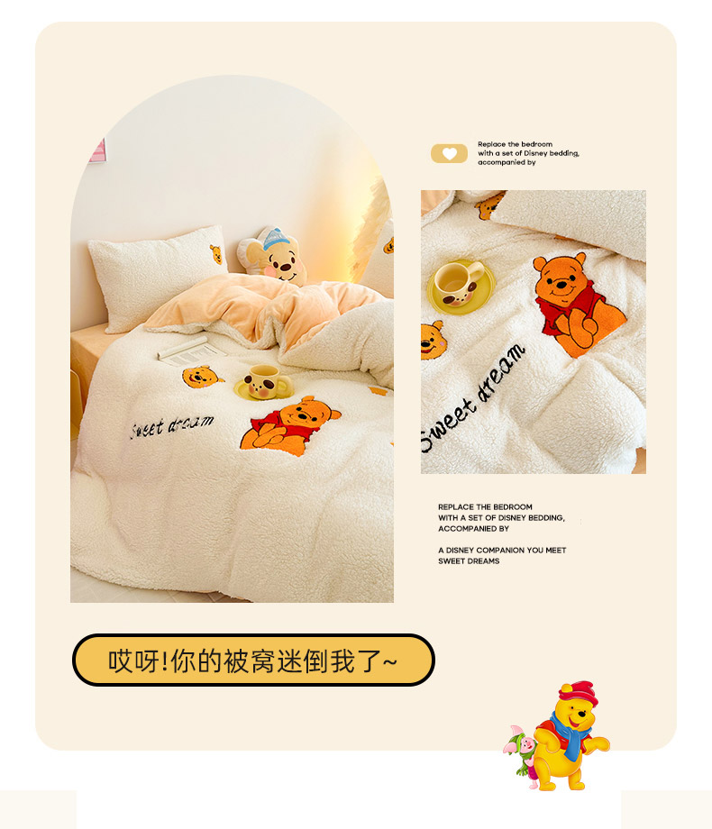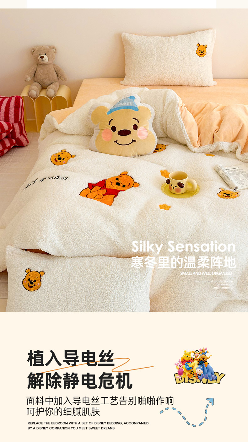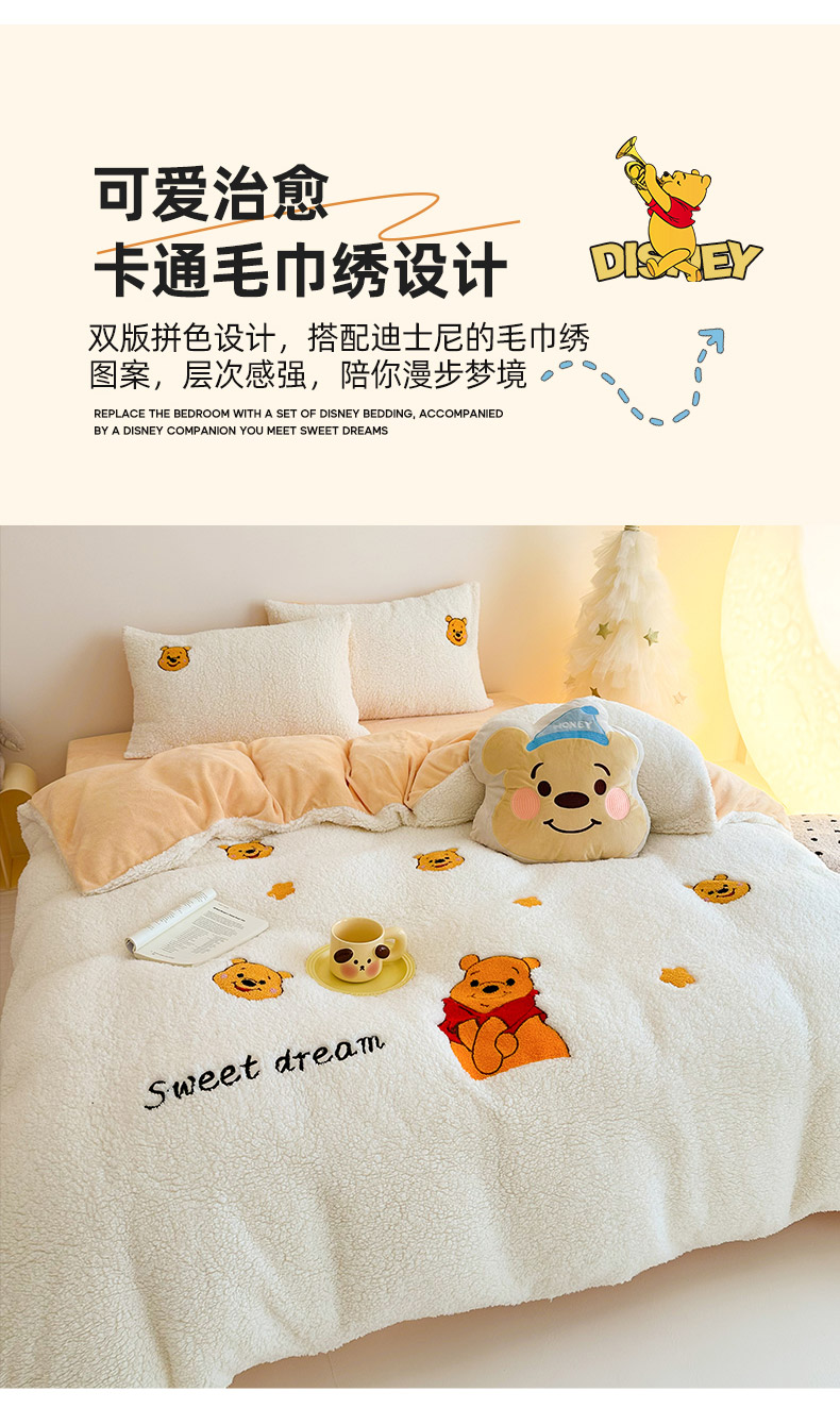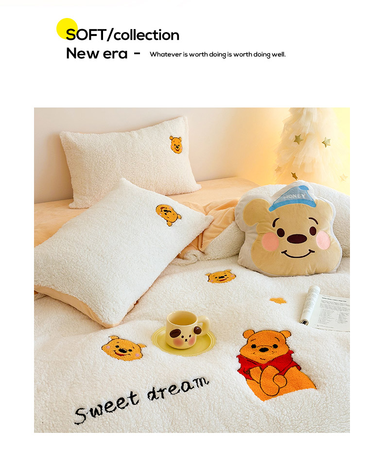 商品名称:乐坊 2024新款羊羔绒毛巾绣牛奶绒四件套冬季加厚保暖 笨笨熊