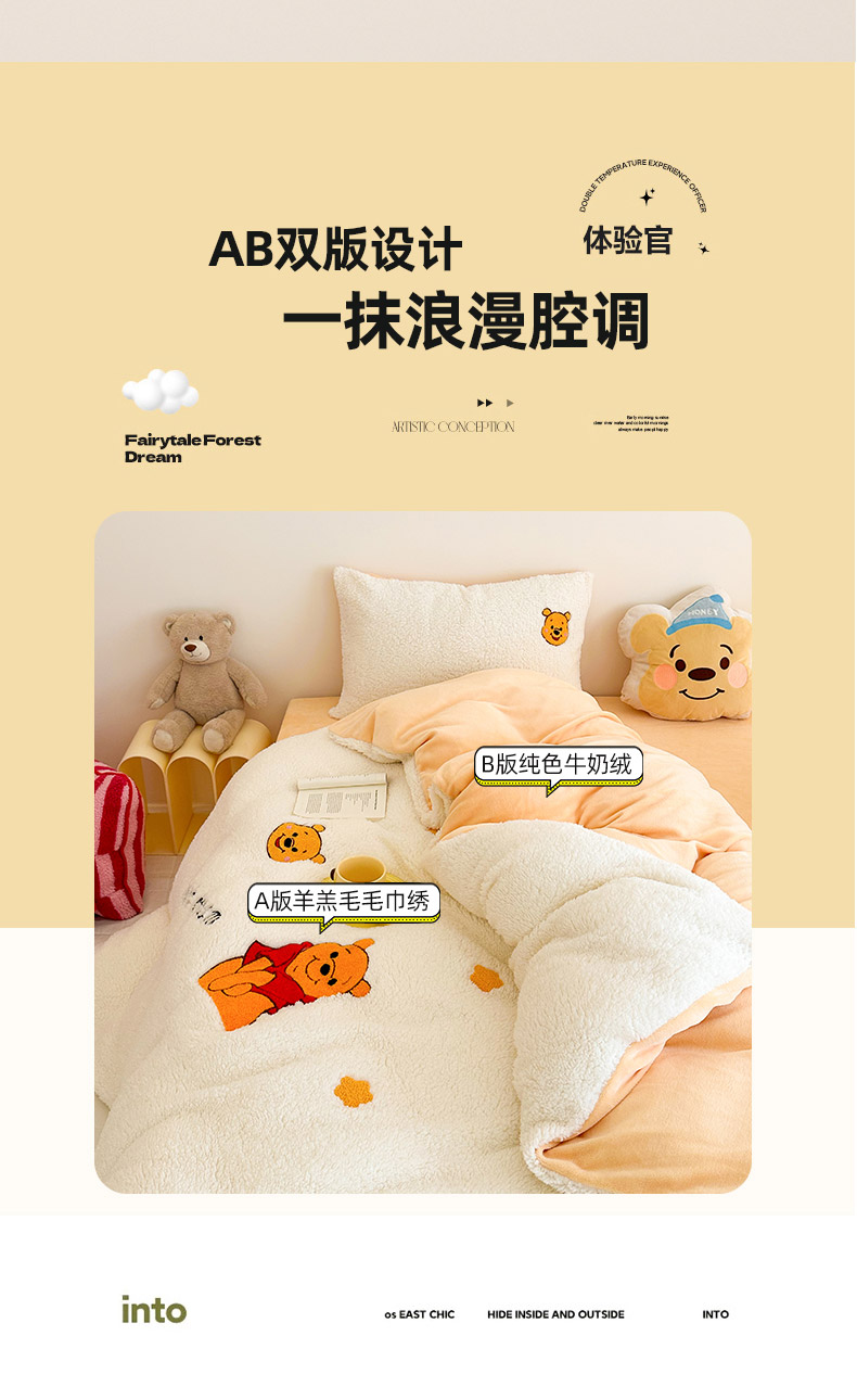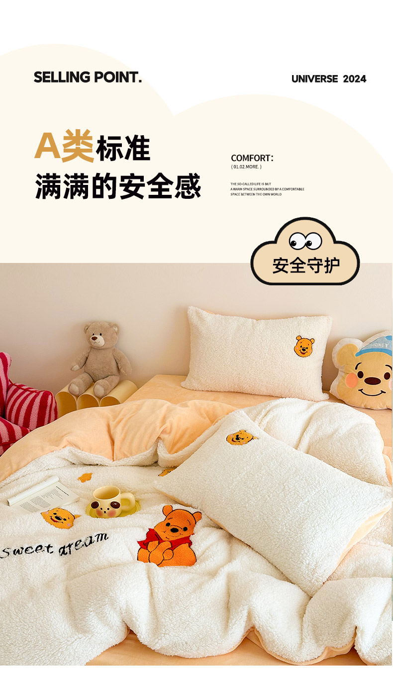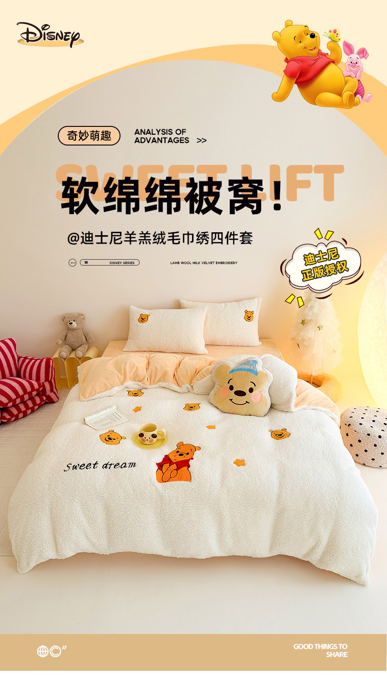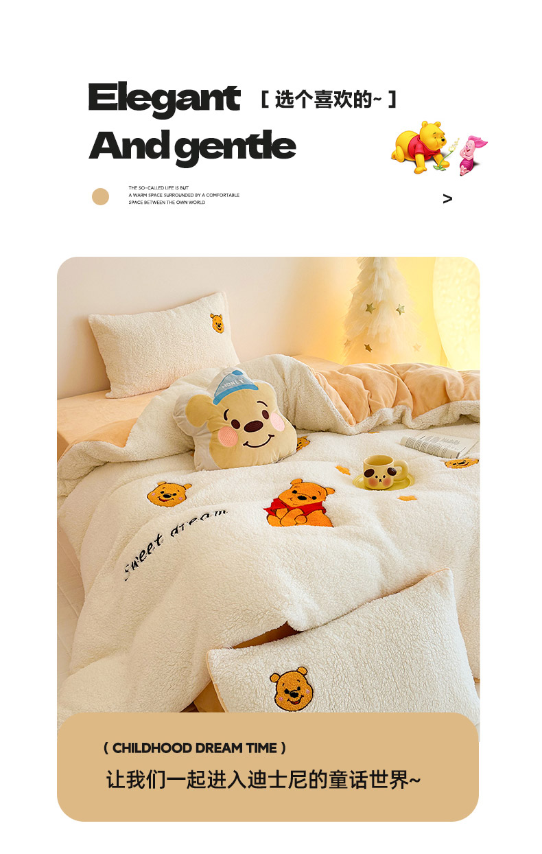 商品名称:乐坊 2024新款羊羔绒毛巾绣牛奶绒四件套冬季加厚保暖 笨笨熊