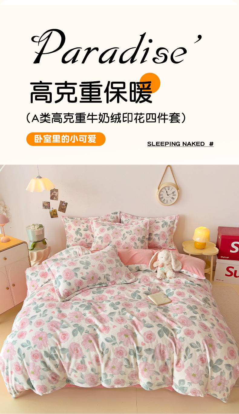 当前位置: 91家纺网 > 商品网购 > 床品套件 > 四件套 > 牛奶绒四件套 > 大柏树 2025新款A类高克重亲肤舒适牛奶绒印花四件套-四件套可定制 朵柔-粉