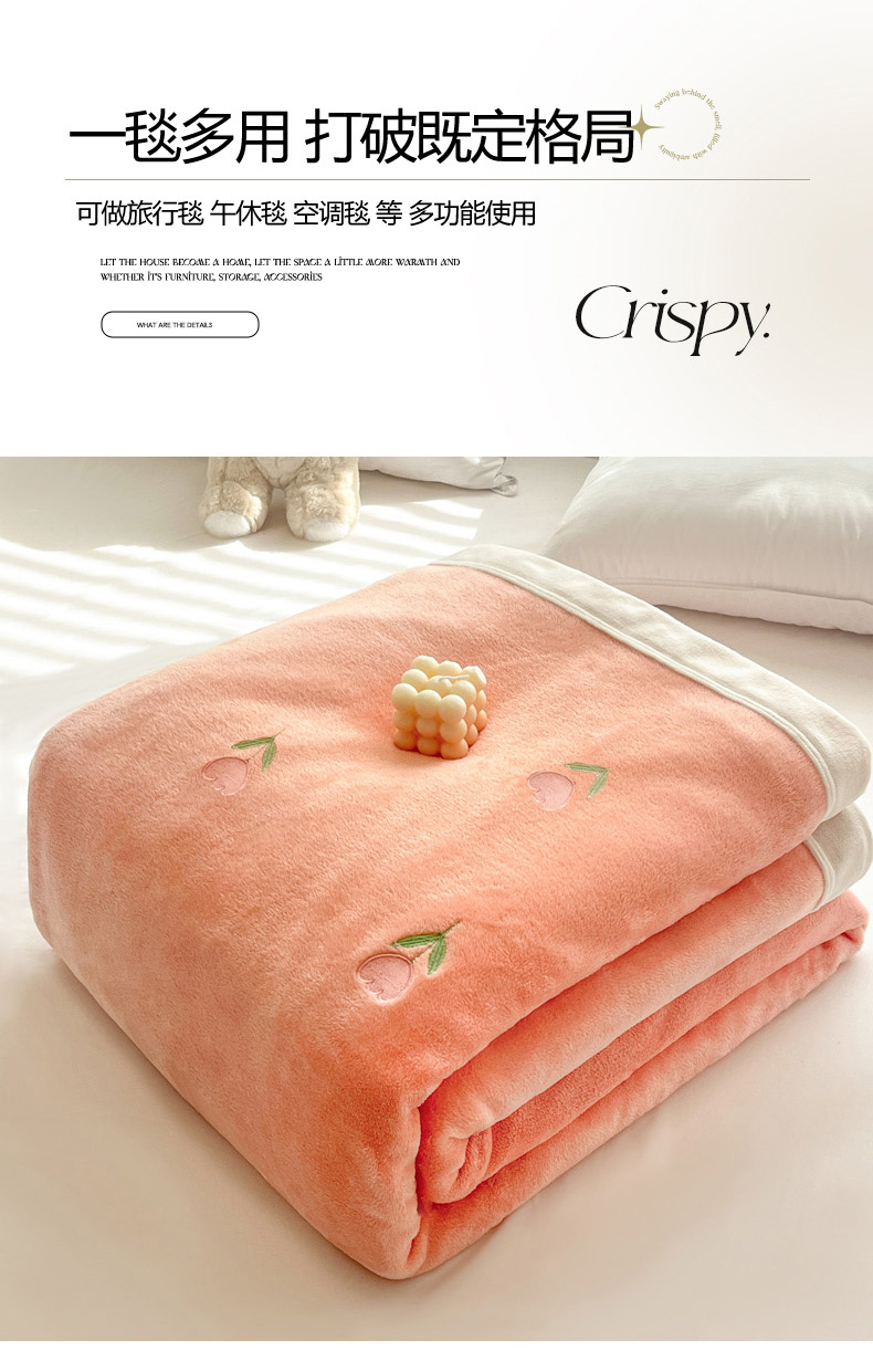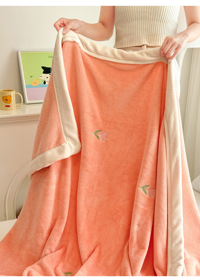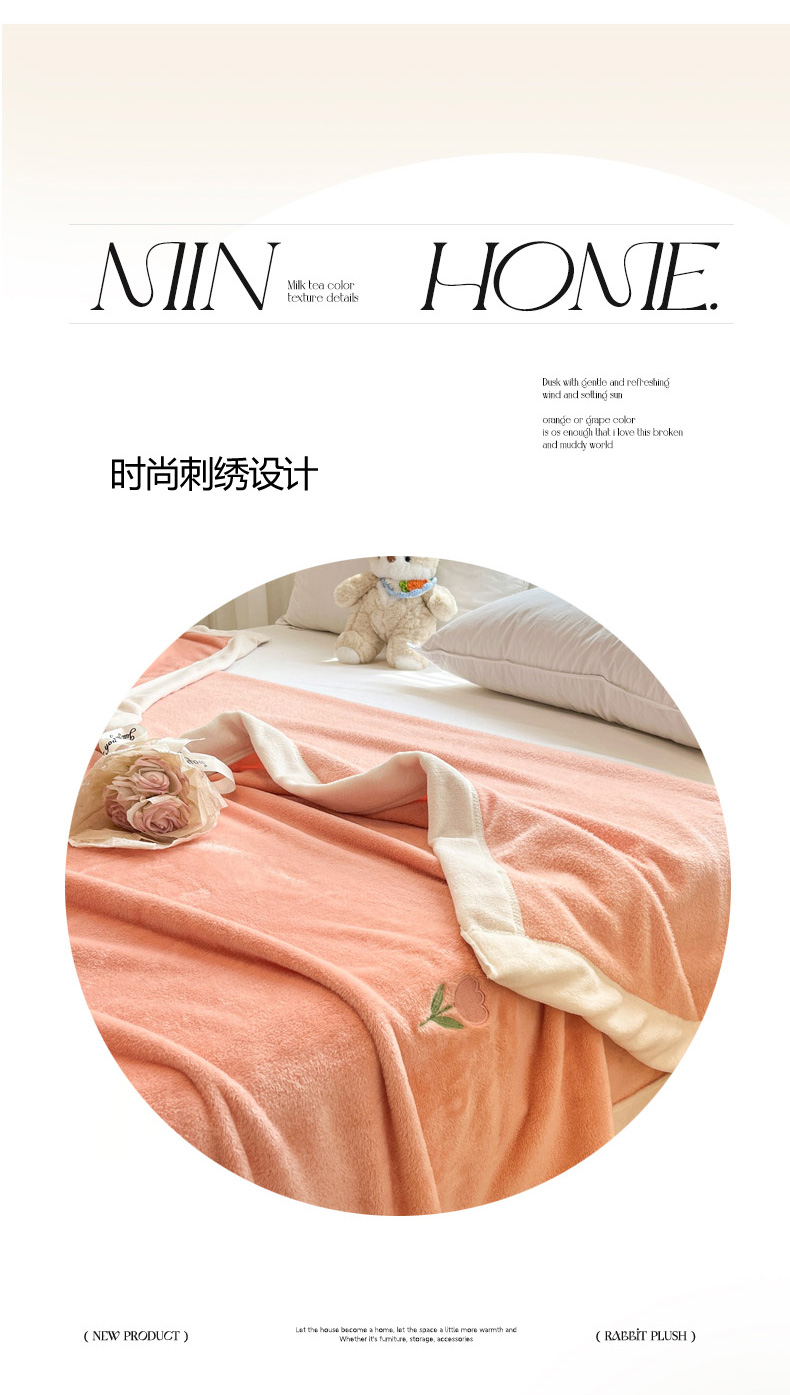 商品名称:慕尚 2025新款简约双面牛奶绒刺绣多功能盖毯-郁金香 郁金香-橘
