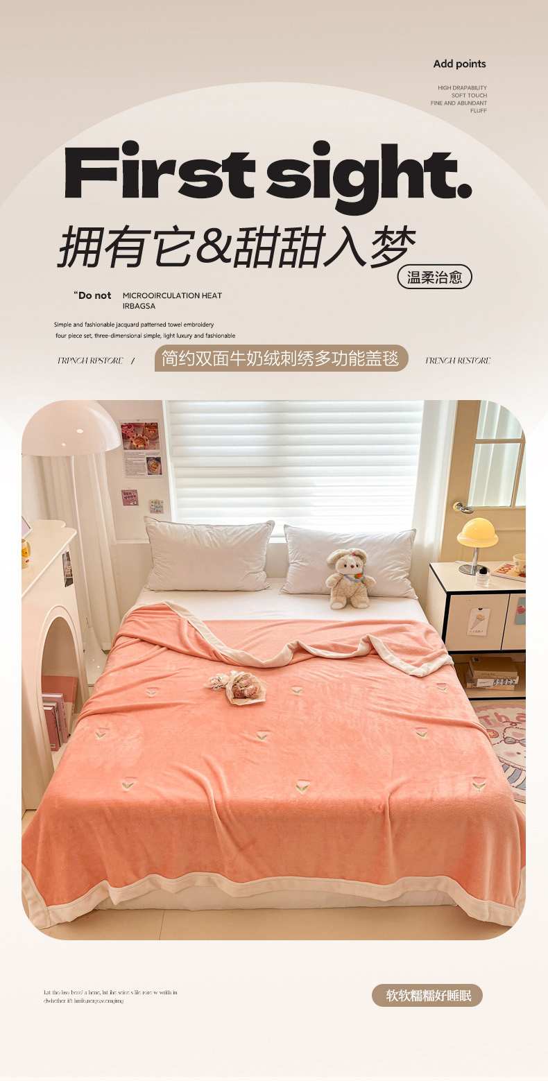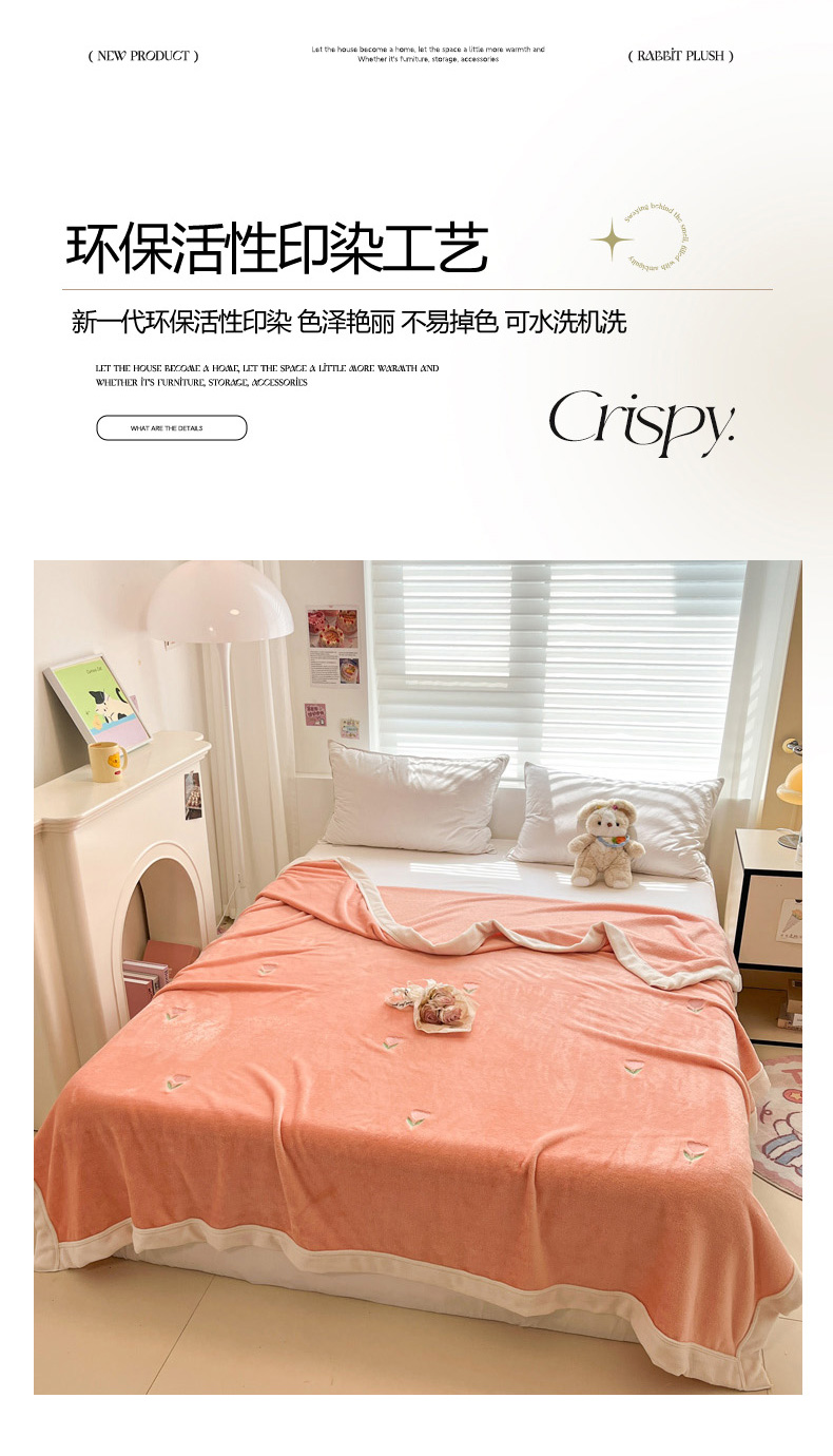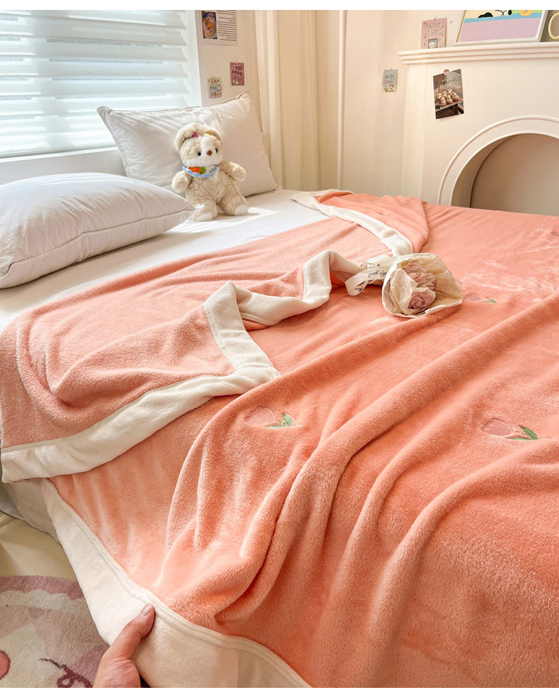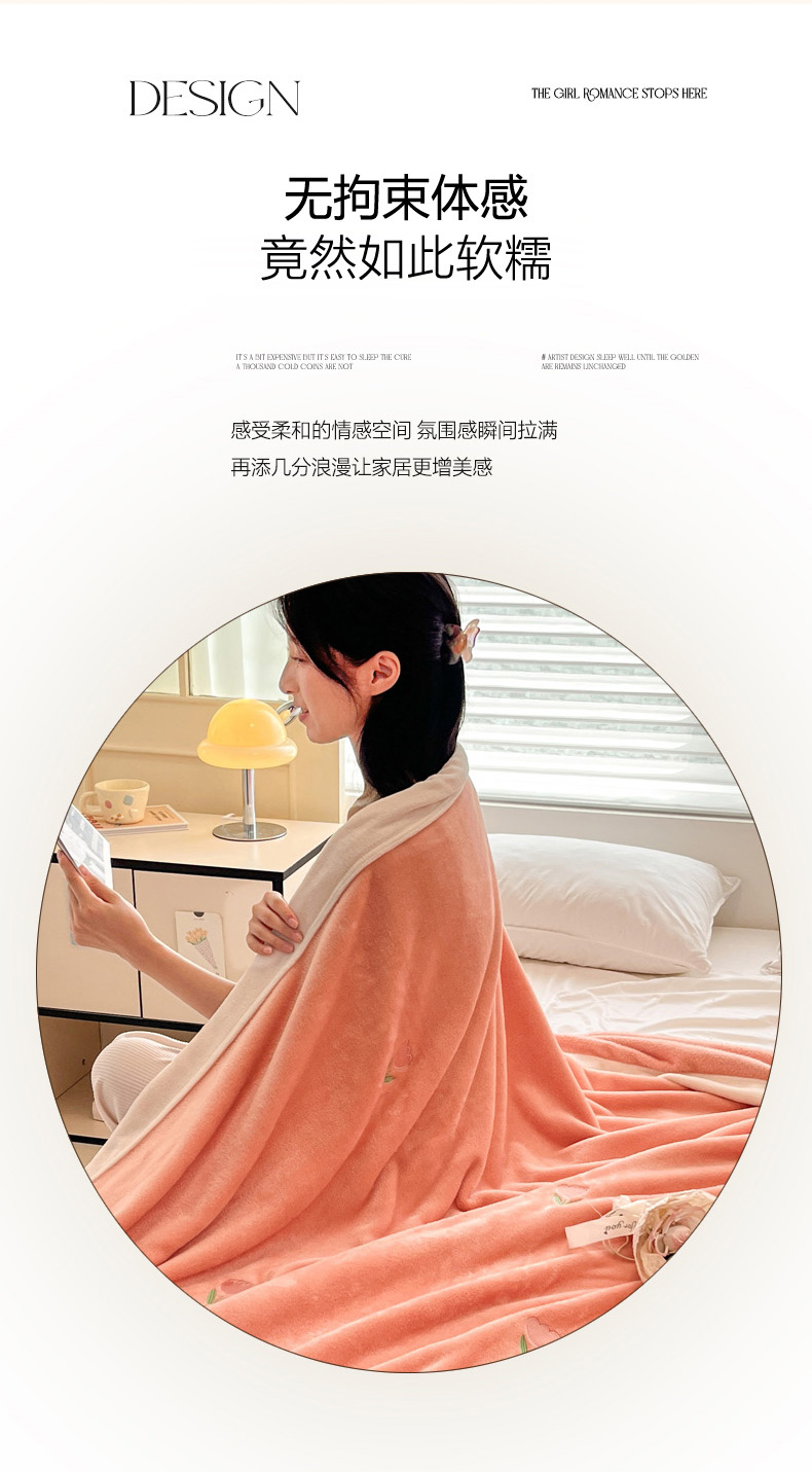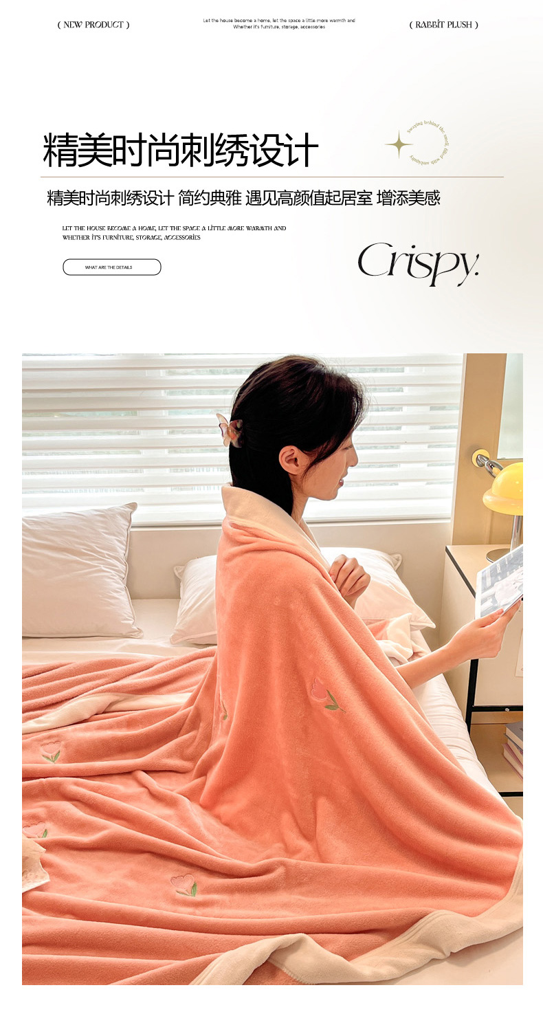 慕尚 2025新款简约双面牛奶绒刺绣多功能盖毯-郁金香 郁金香-橘