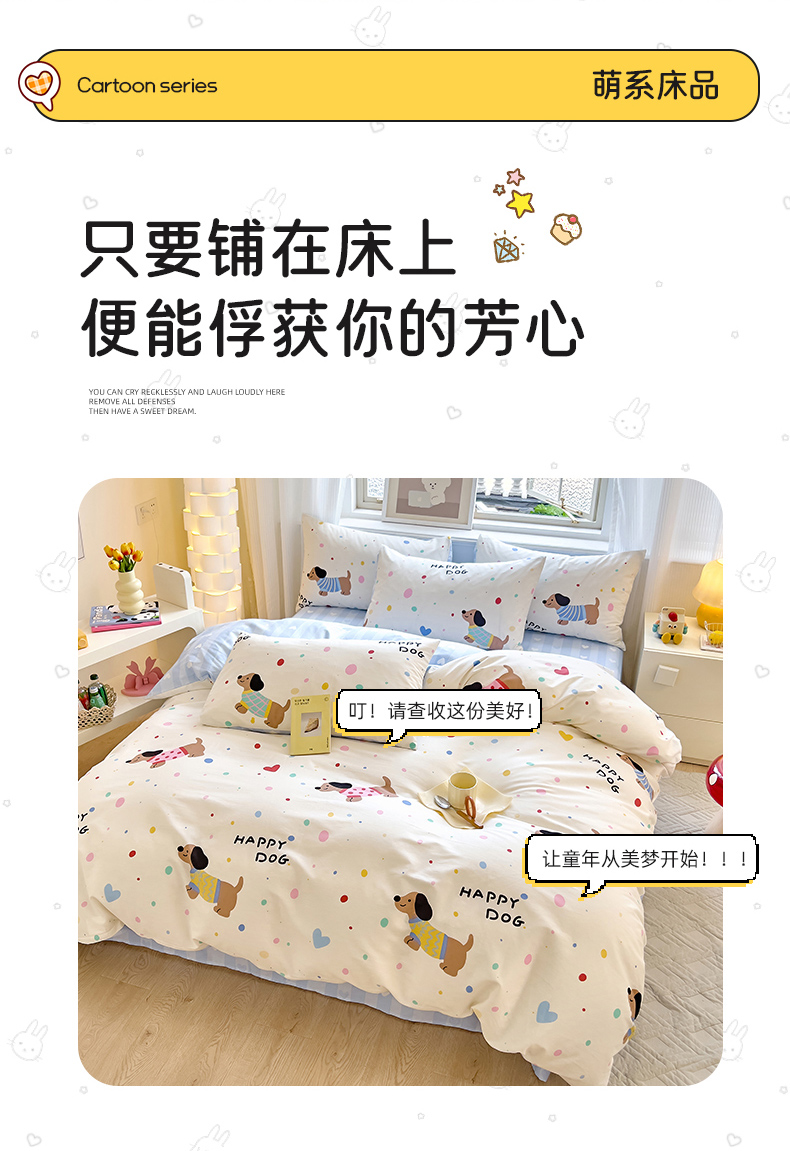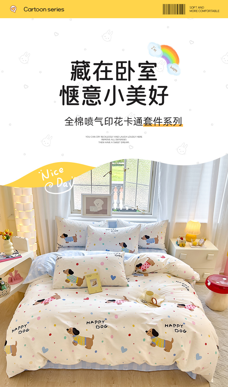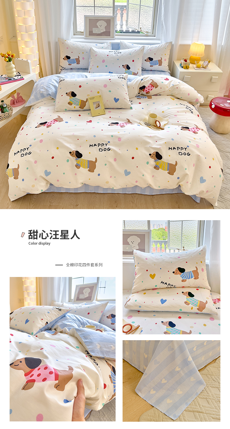 当前位置: 91家纺网 > 商品网购 > 床品套件 > 四件套 > 全棉普通四件套 > 拾物记 2024新款A类12868全棉喷气印花四件套 甜心汪星人