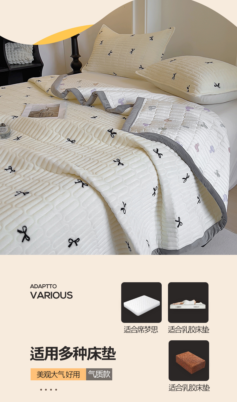 商品名称:美梦家纺 2024新款牛奶绒简单款夹棉床盖三件套 米雅