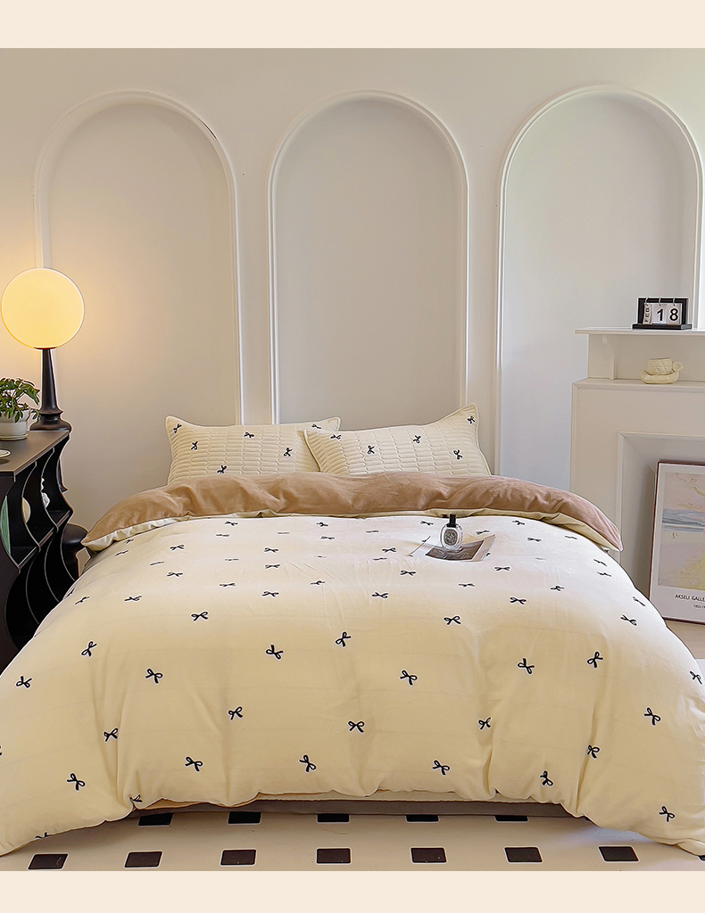 当前位置: 91家纺网 > 商品网购 > 床品套件 > 四件套 > 牛奶绒四件套 > 美梦家纺 2024新款牛奶绒简单款夹棉床盖四件套 精灵熊黑