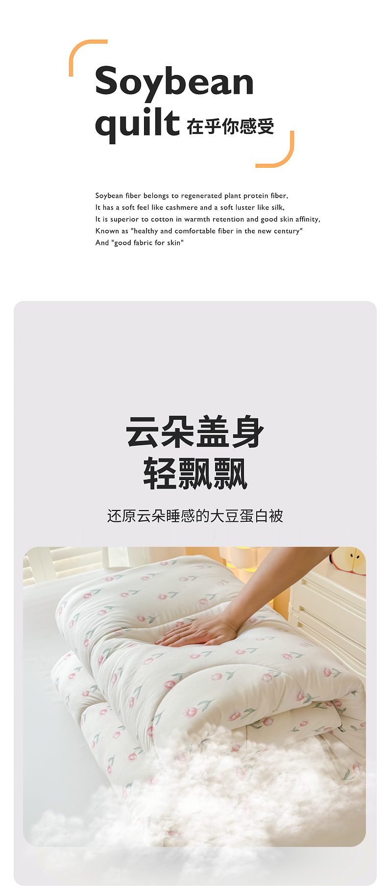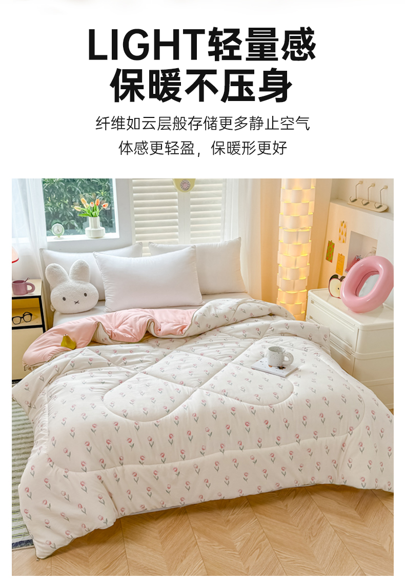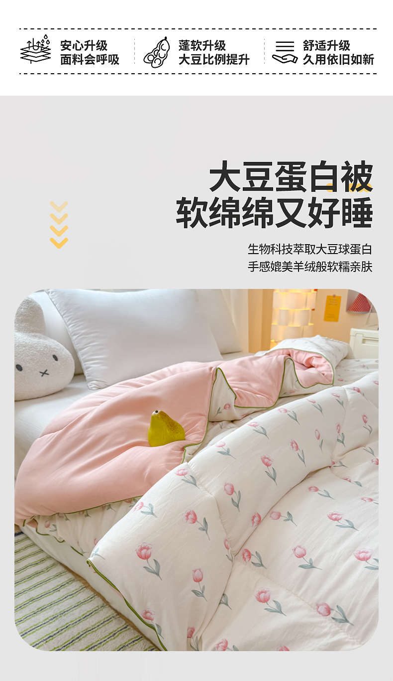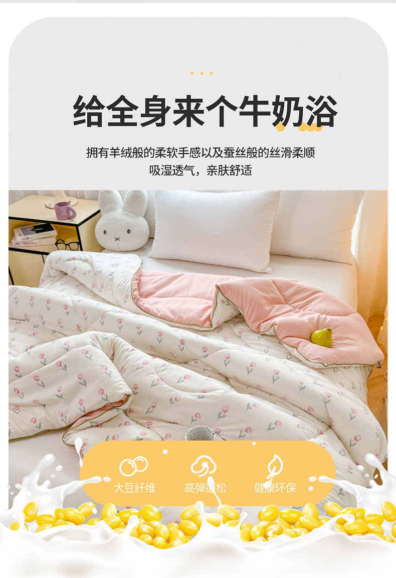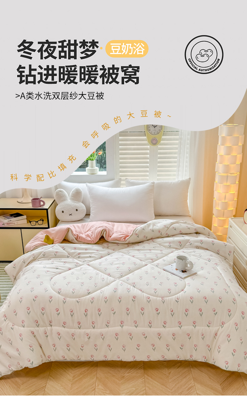 艺菲阁家纺 2024新款A类水洗双层纱大豆纤维被冬被新花型 落幕花店