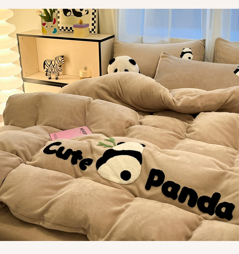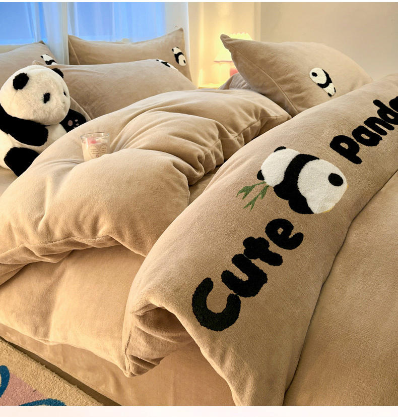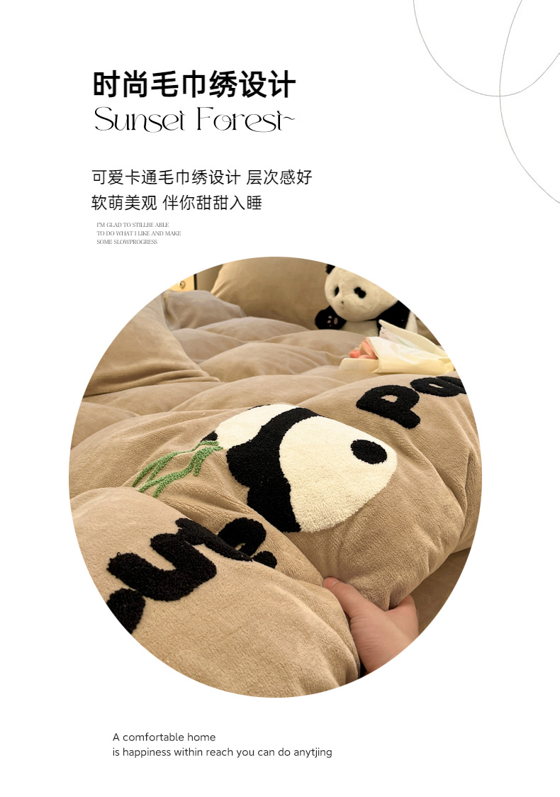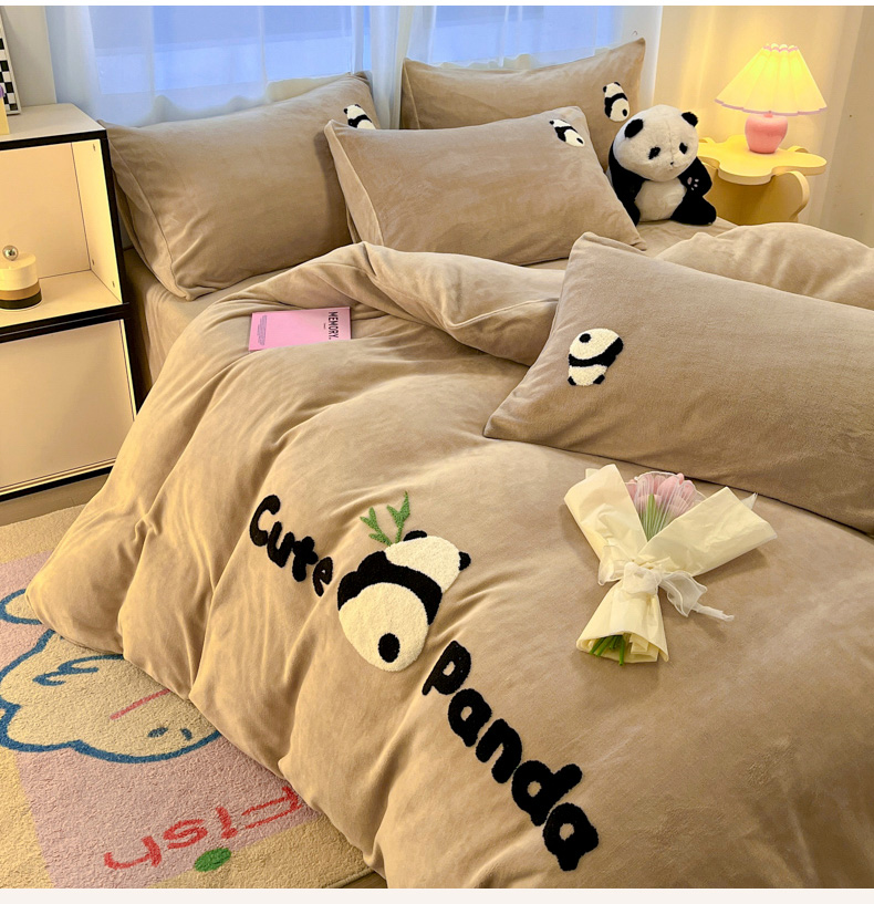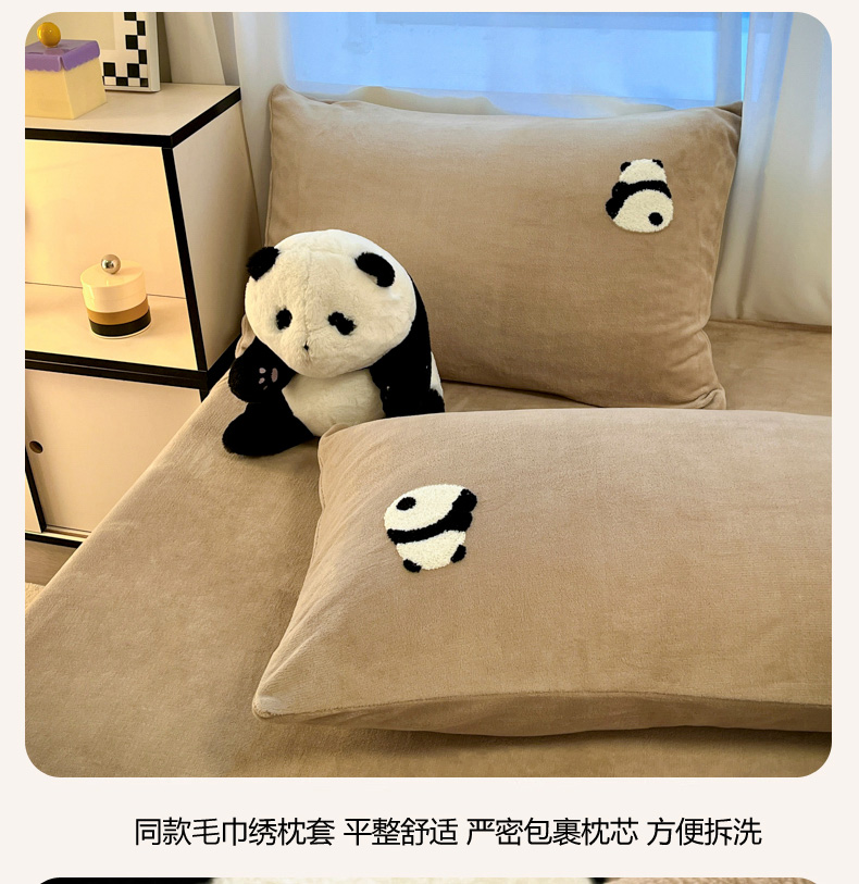 葡萄家 2024新款卡通牛奶绒毛巾绣可爱熊猫保暖四件套提供买家秀 萌宝牛奶绒-咖