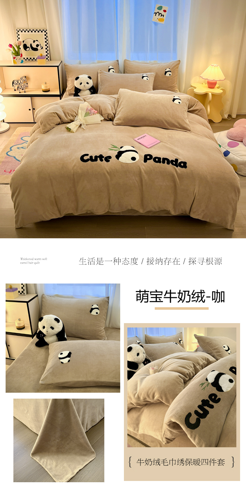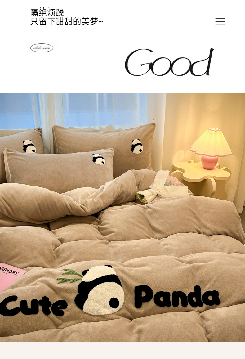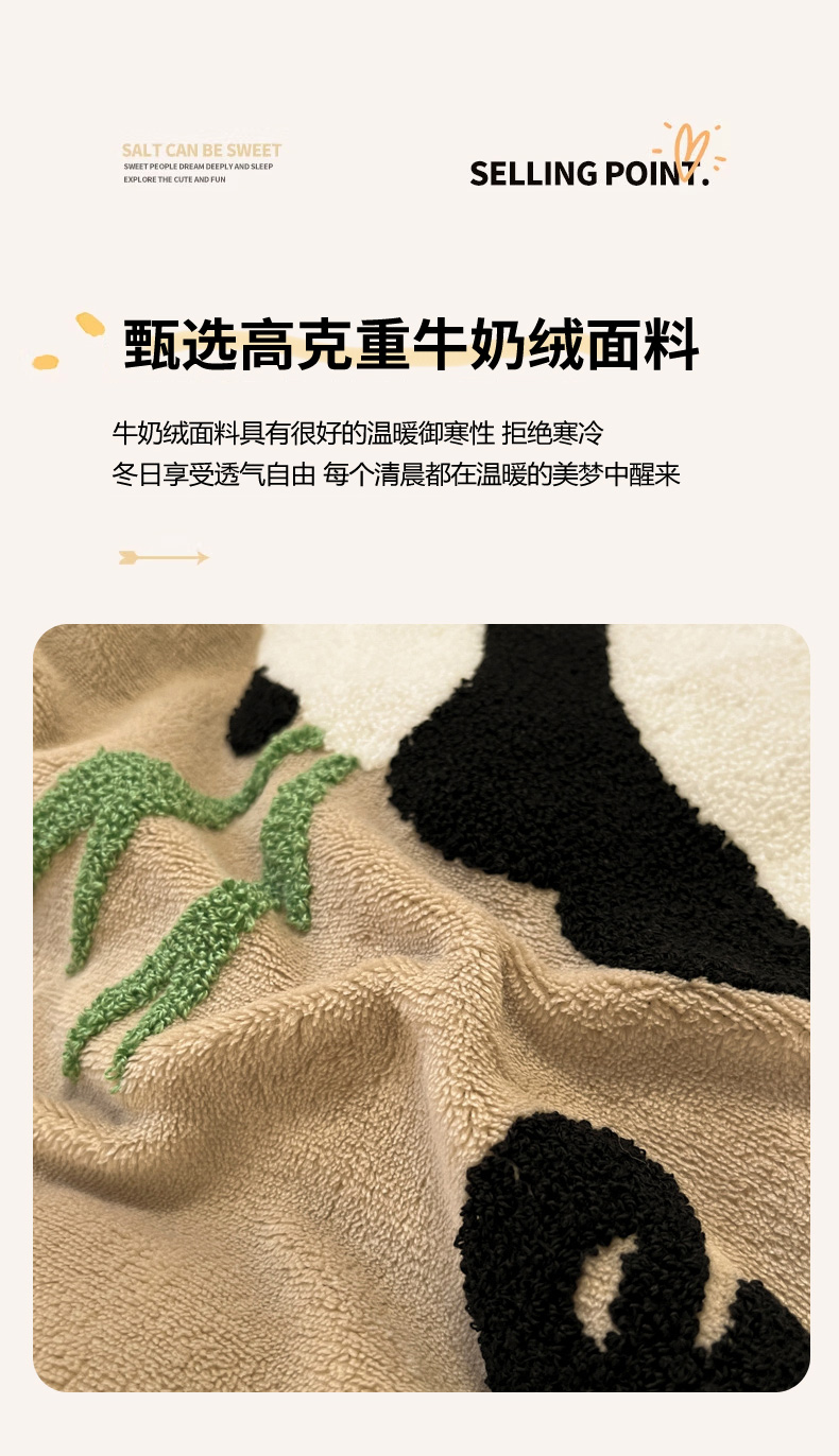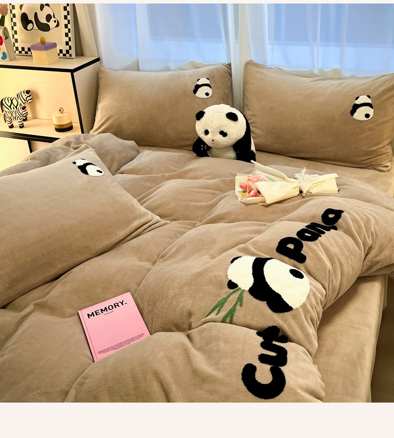葡萄家 2024新款卡通牛奶绒毛巾绣可爱熊猫保暖四件套提供买家秀 萌宝牛奶绒-咖