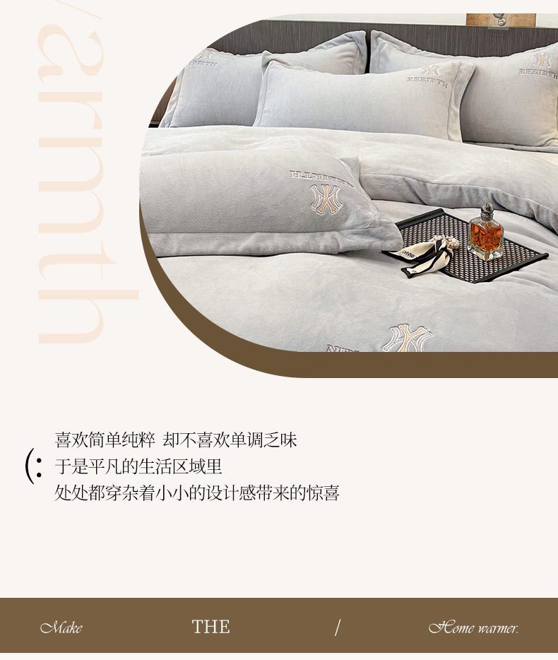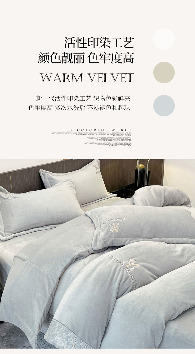 (总)星尚家纺 2024全消光A类230g牛奶绒绣花保暖绒四件套-豹纹,卡其色,奶昔白,时尚灰,芝芝粉