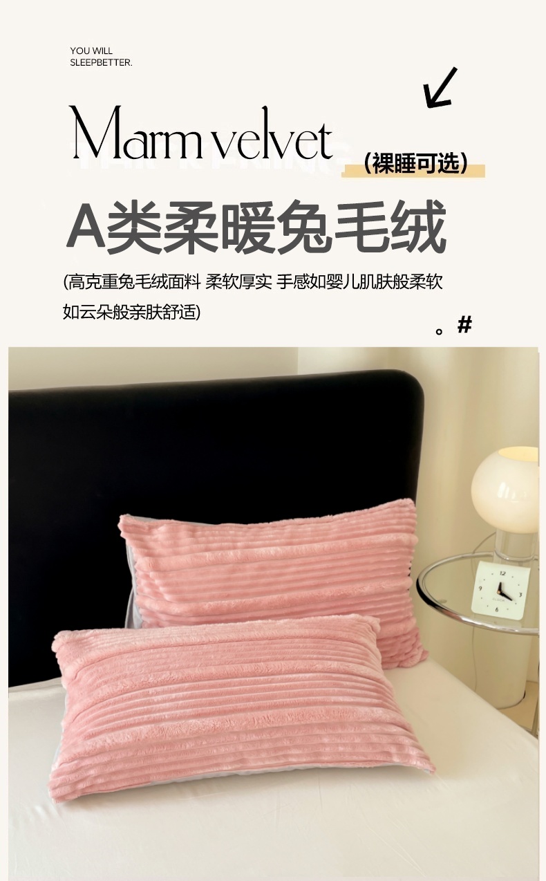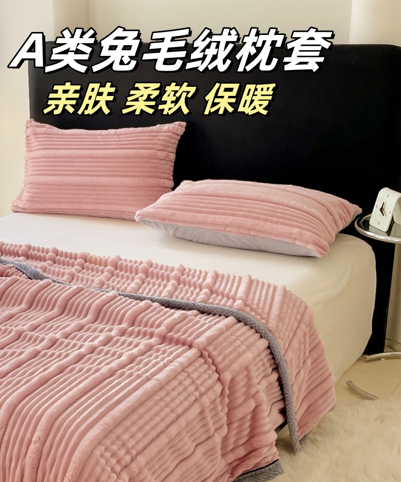 商品名称:梦舒羽 2025新款兔毛绒子母条枕套 豆粉
