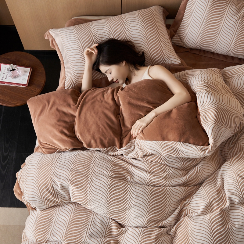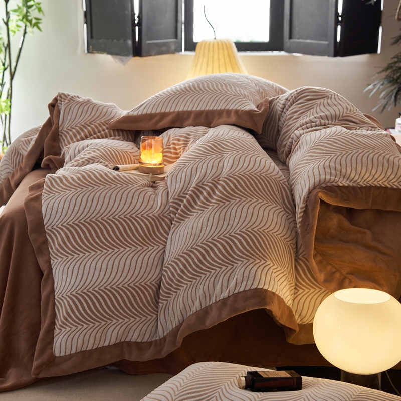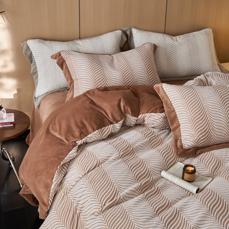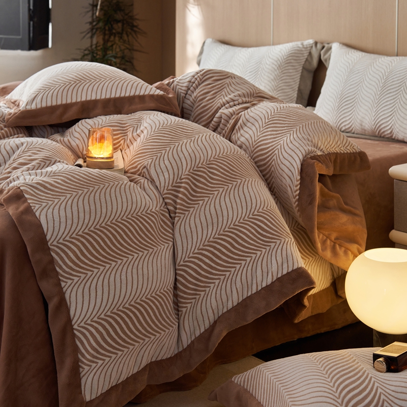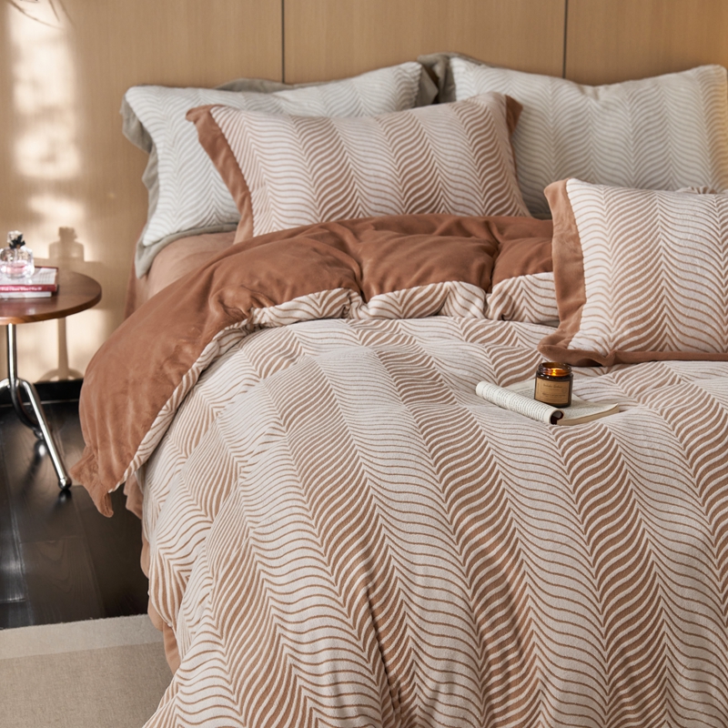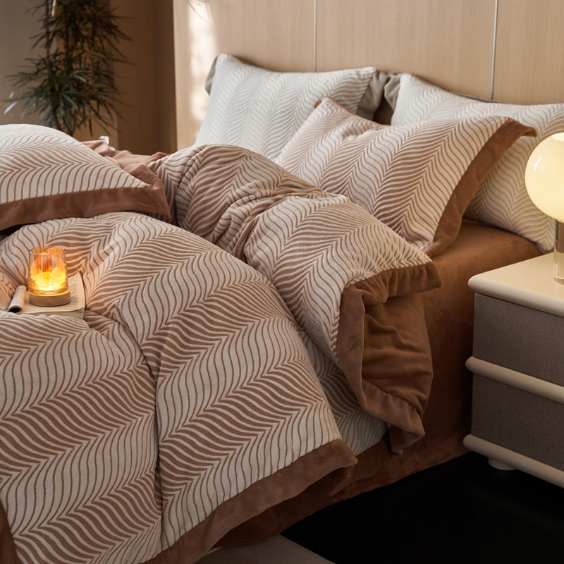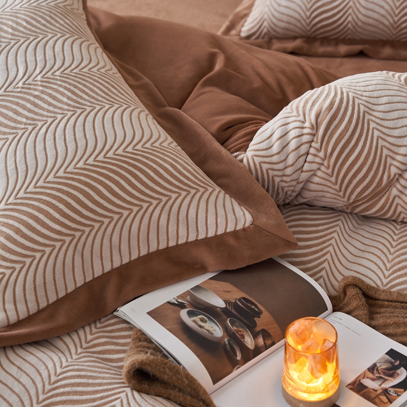 时年家纺 2024新款高克重暖暖云朵牛奶绒工艺款四件套-素羽 素羽-摩卡