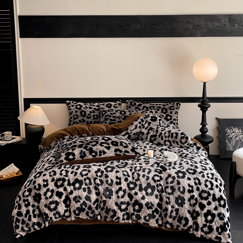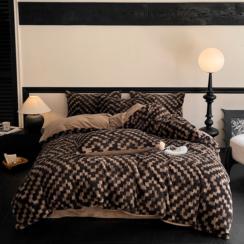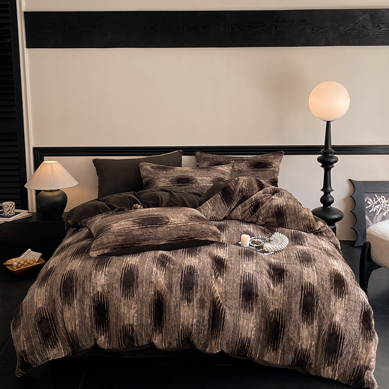 798家纺 2025新款兔毛印花四件套美拉德系列 美拉德-复古玫瑰咖
