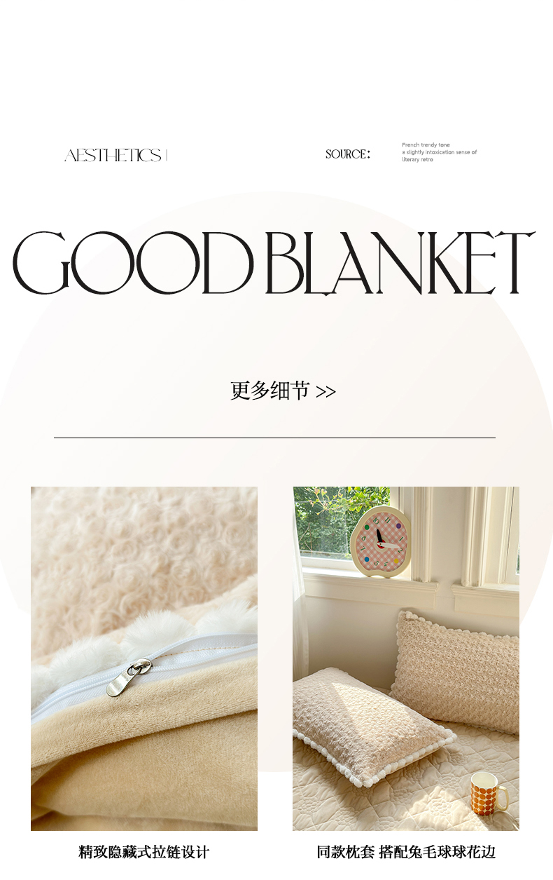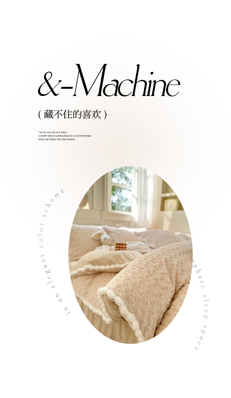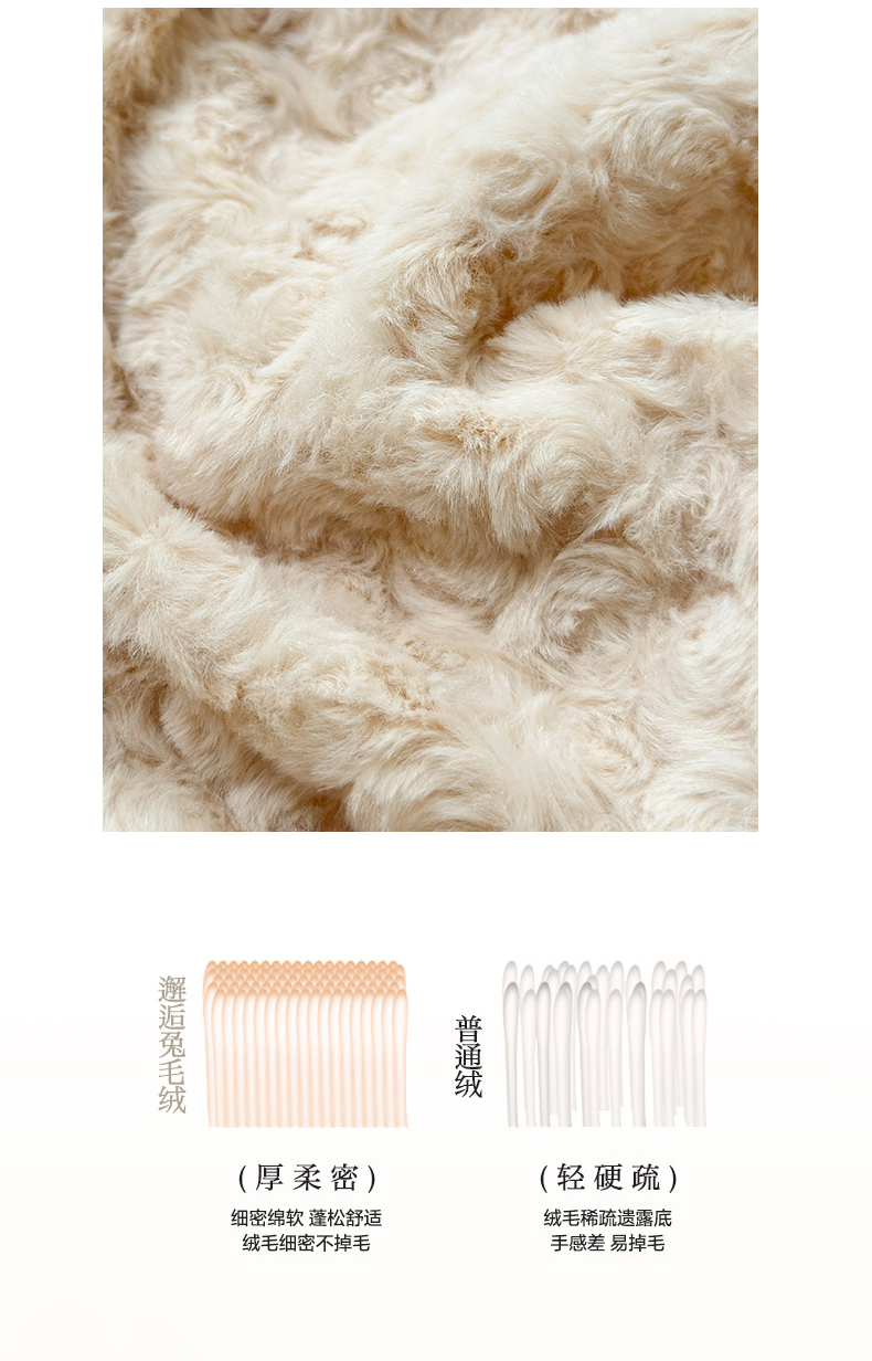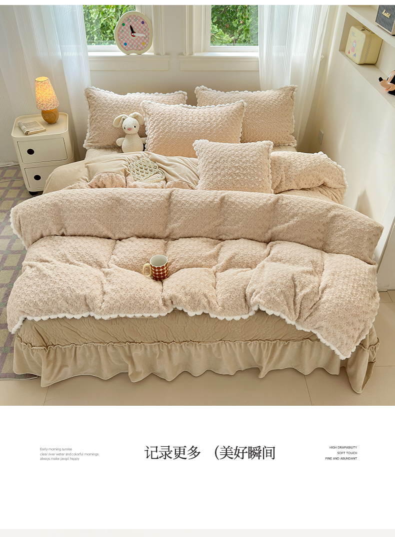 商品名称:淑女公社家纺 2024秋冬新款A版兔毛玫瑰B版婴儿绒床盖款四件套兔毛玫瑰米咖色