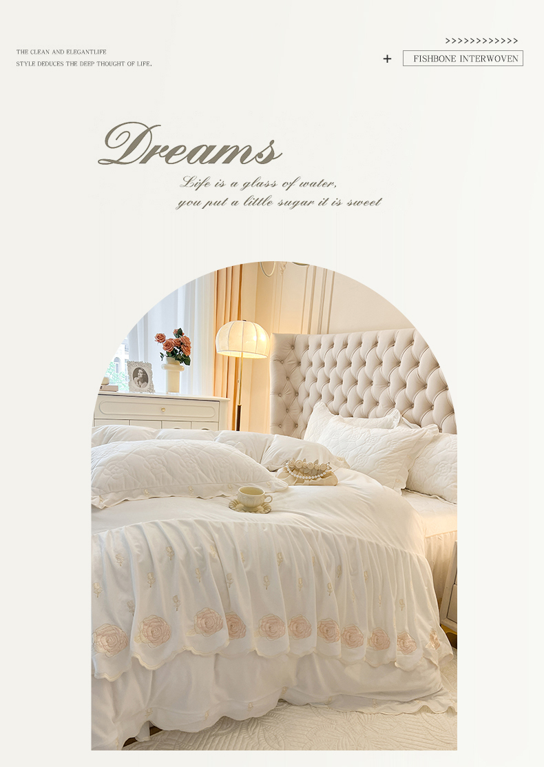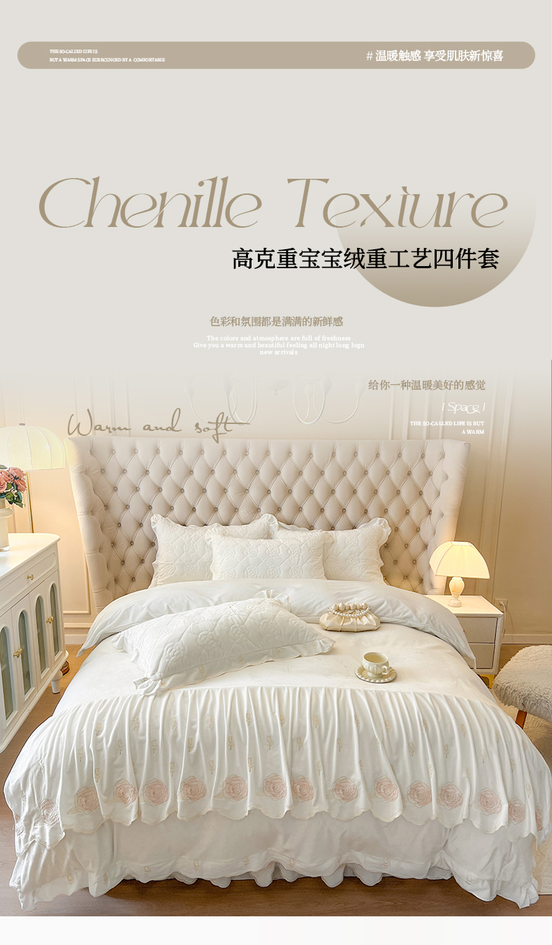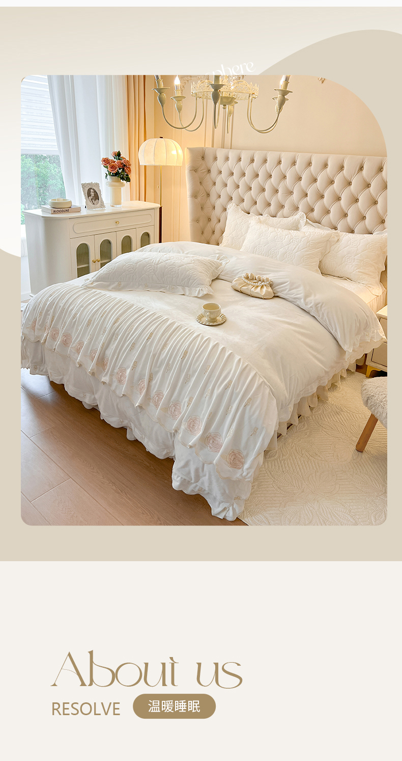 当前位置: 91家纺网 > 商品网购 > 床品套件 > 四件套 > 宝宝绒四件套 > 麒豆豆 2024新款宝宝绒床裙四件套-晨曦玫瑰 晨曦玫瑰-奶油白