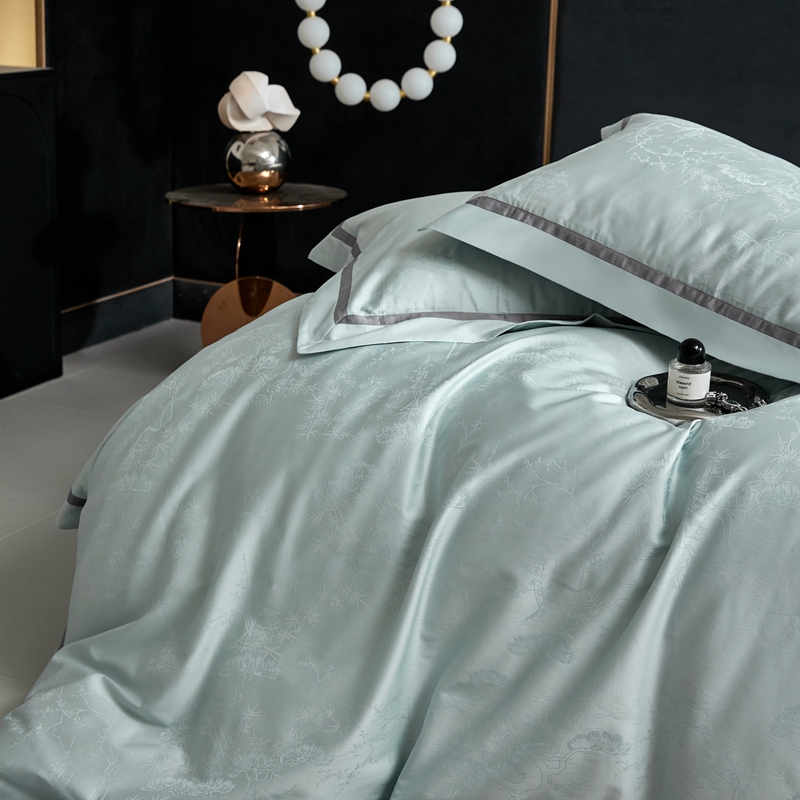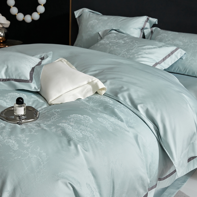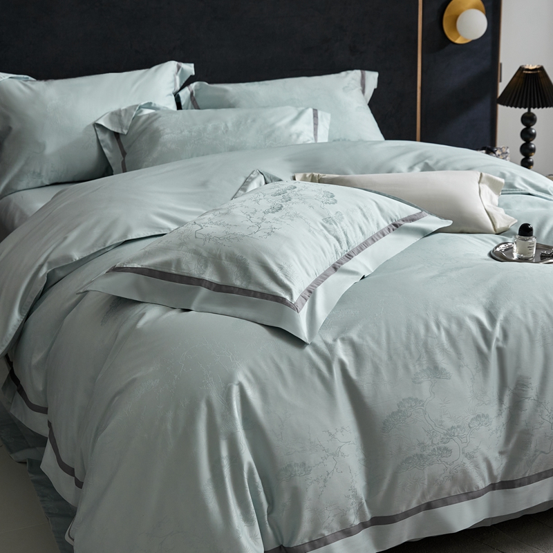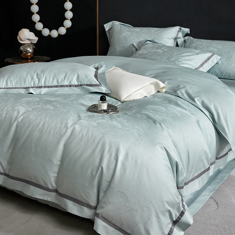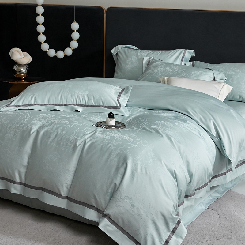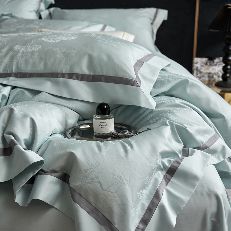 商品名称:琉宿家纺 2025新款50s双股长绒棉提花宽边工艺四件套枫洛(清新兰)