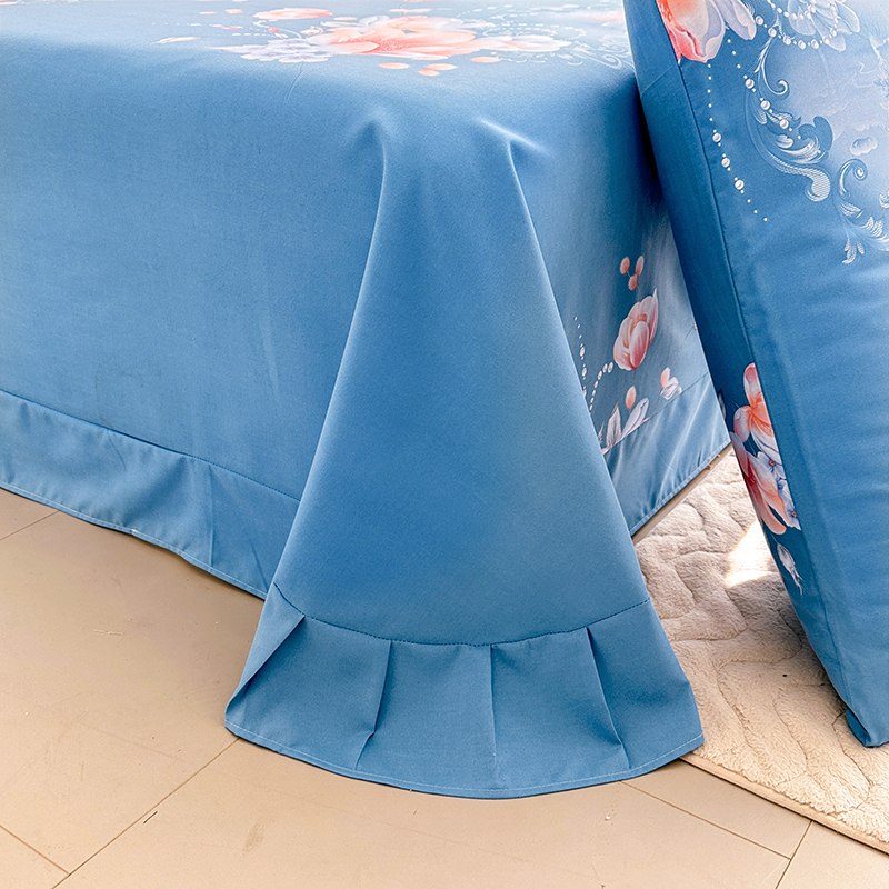 家贝爱 2024新款加厚原棉磨毛花边床单 墨染芳华