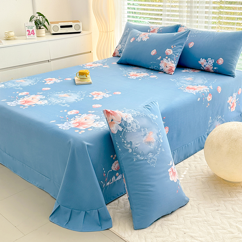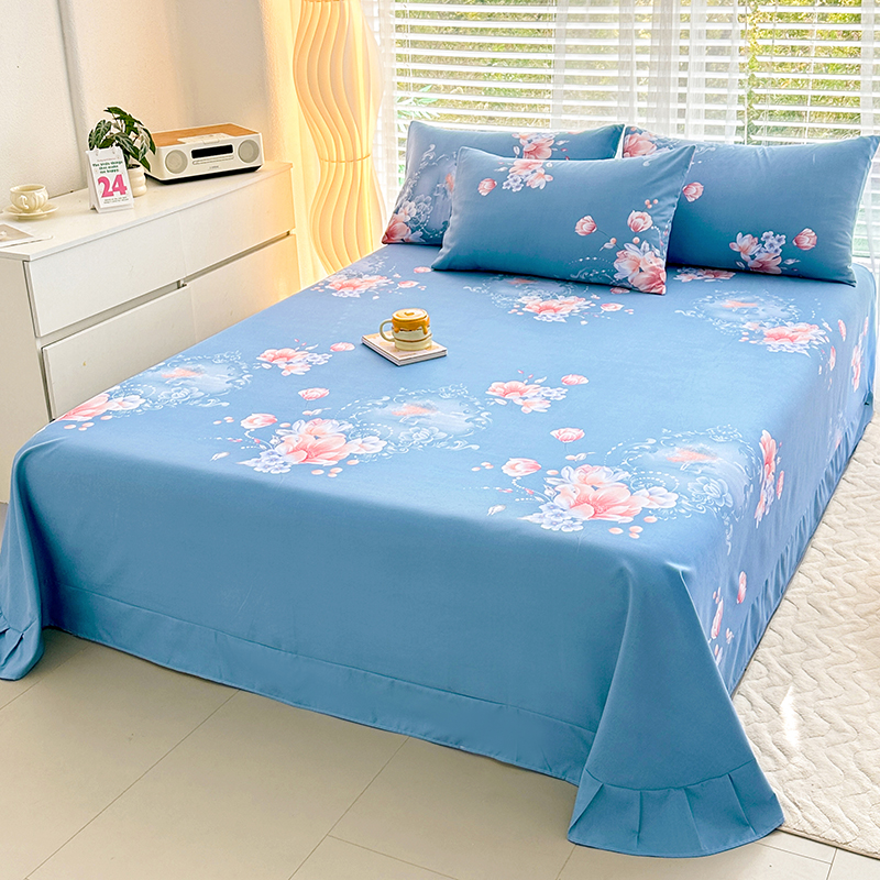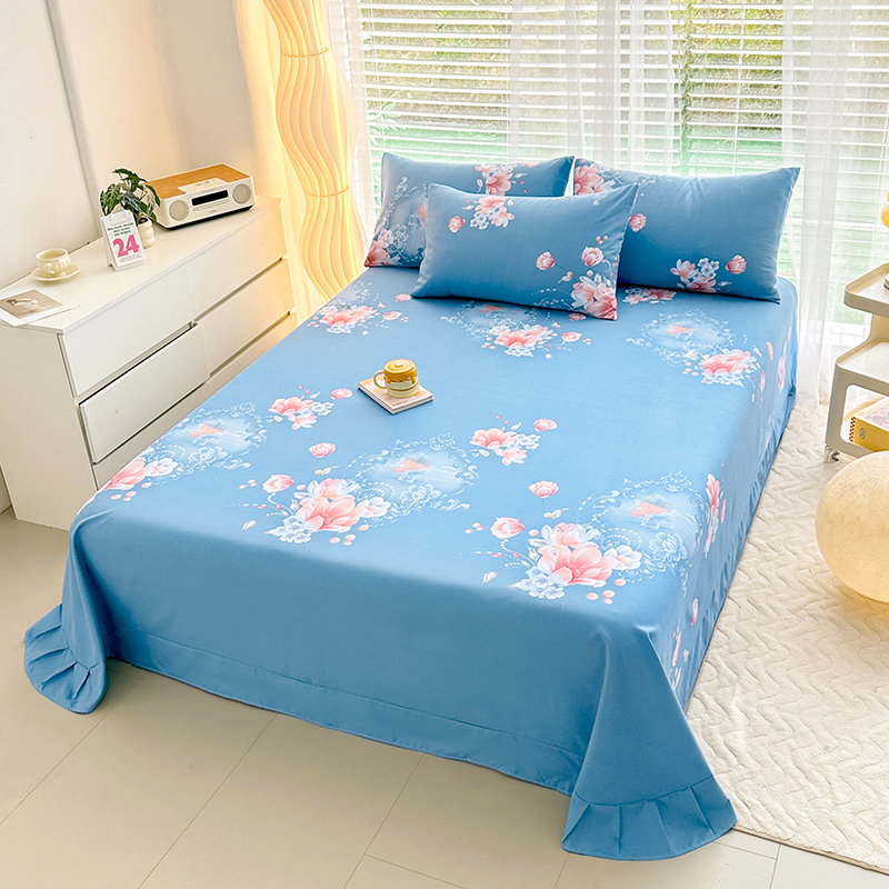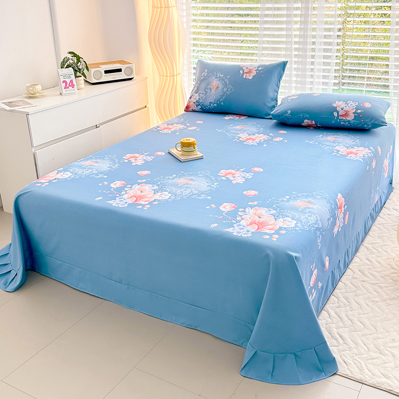 • 91家纺网 家纺一手货源 找家纺 家贝爱 2024新款加厚原棉磨毛花边床单 墨染芳华