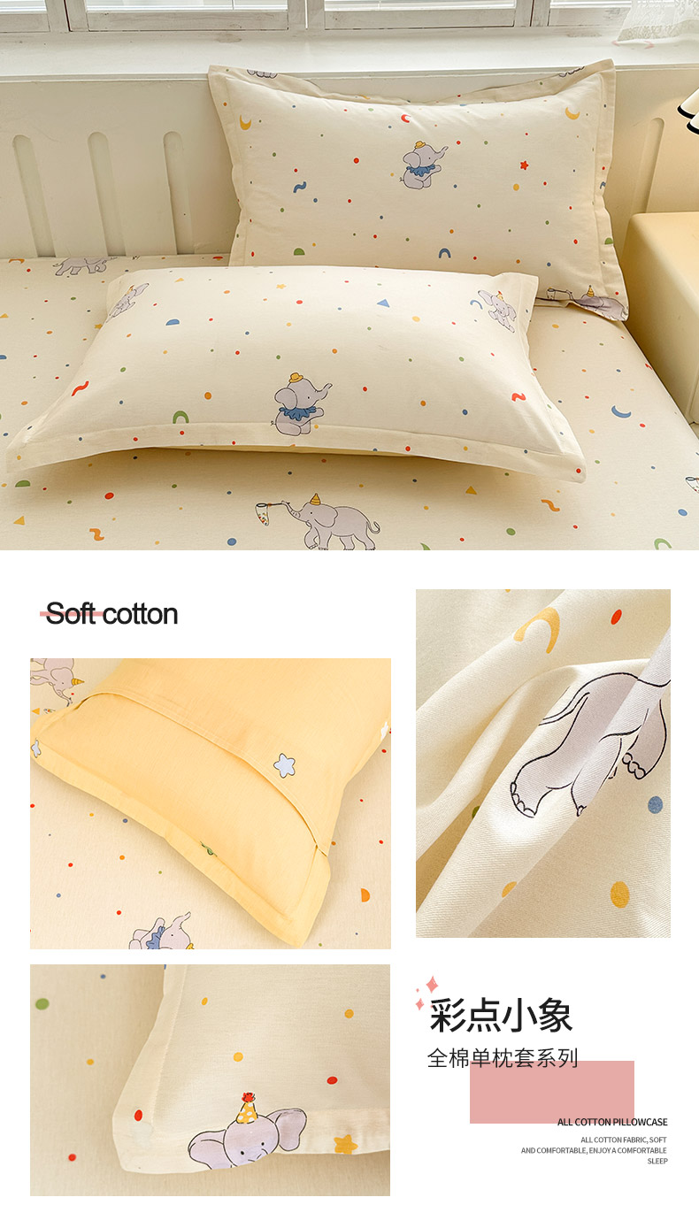 绵庭家纺 2025新款全棉印花单枕套系列 彩点小象