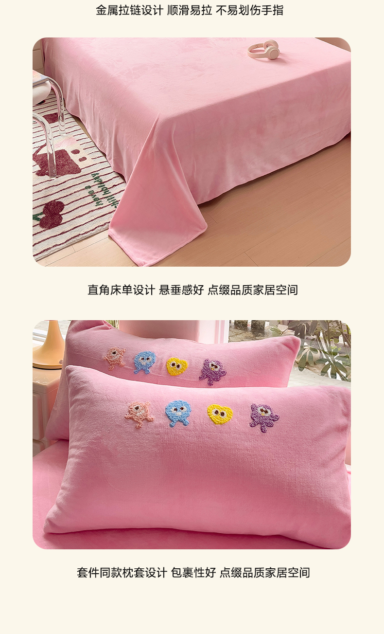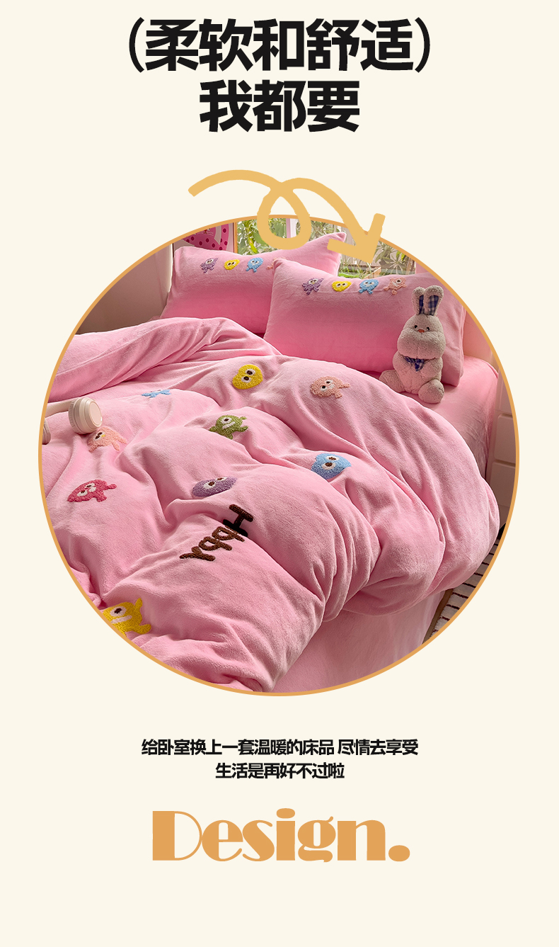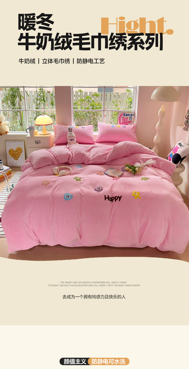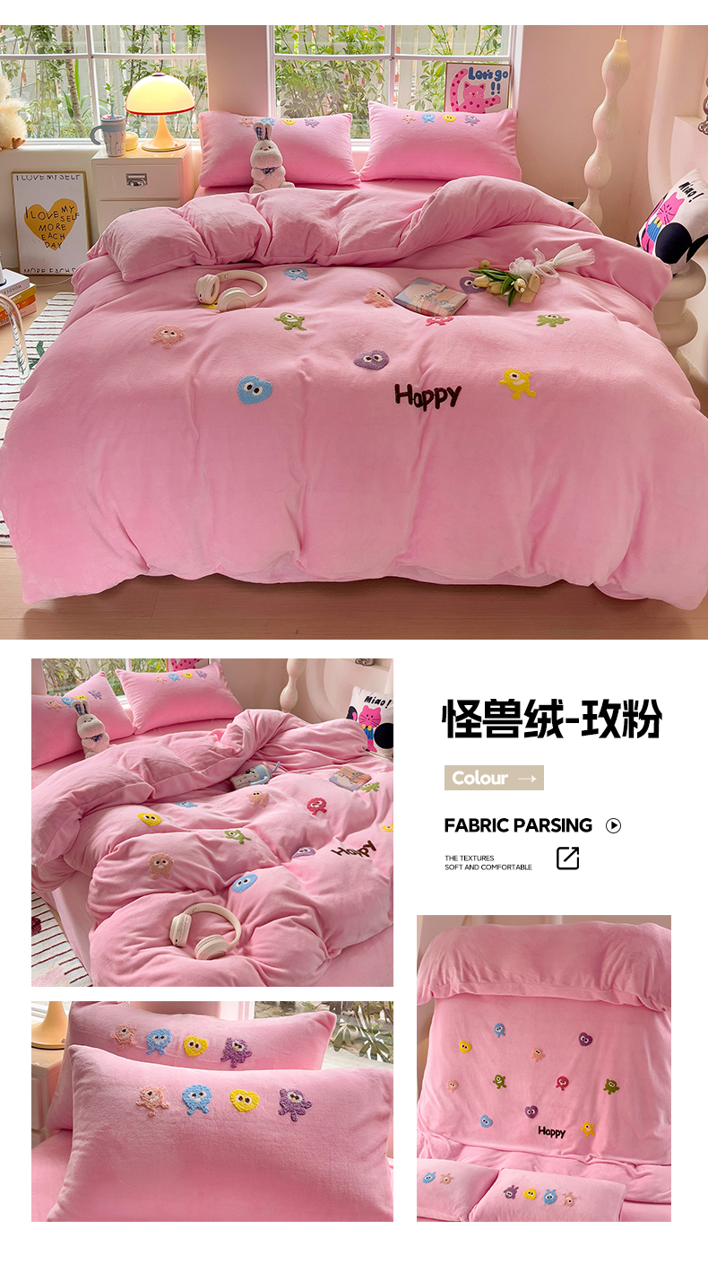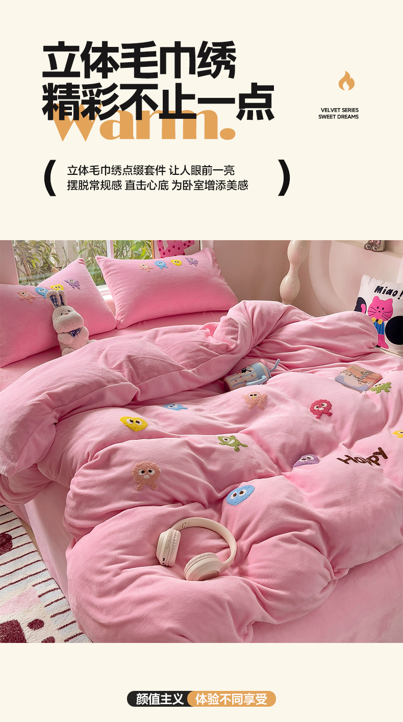 水墨江南 2024新款怪兽绒系列牛奶绒毛巾绣四件套 怪兽绒-玫粉