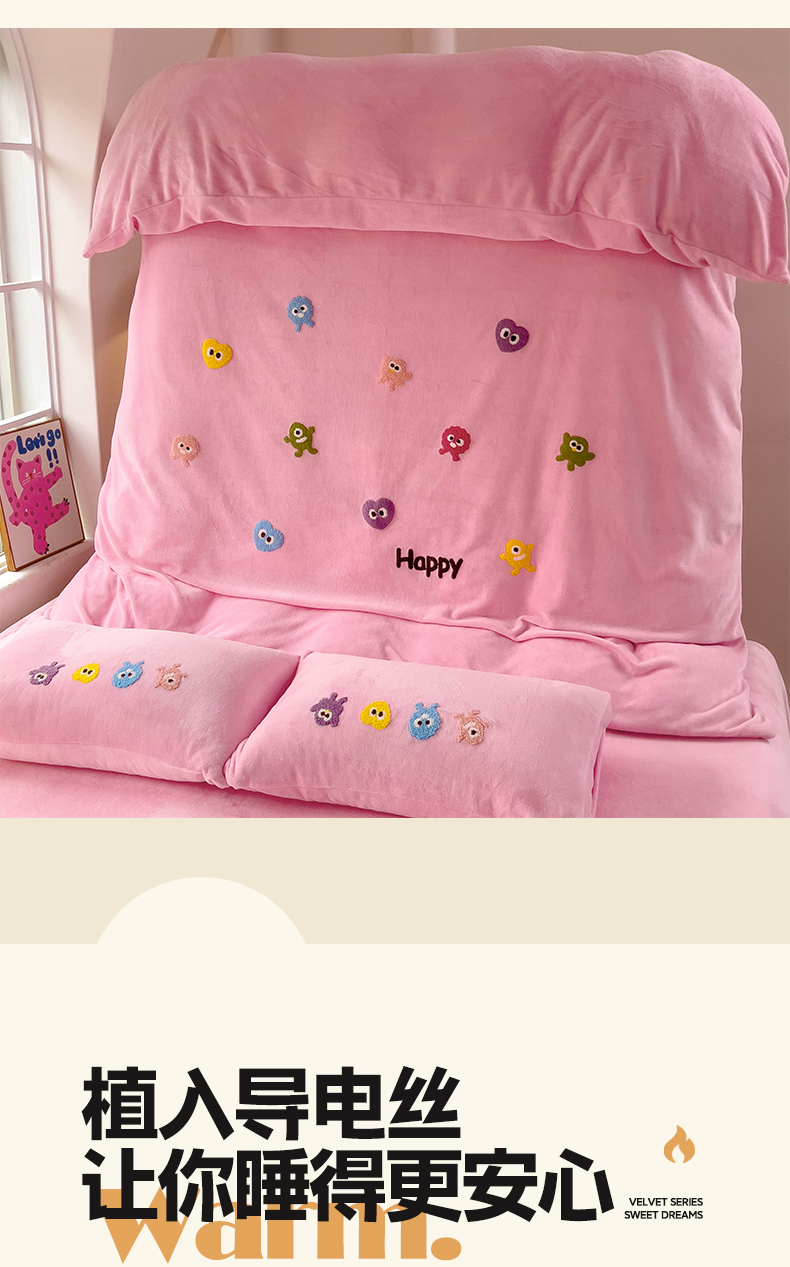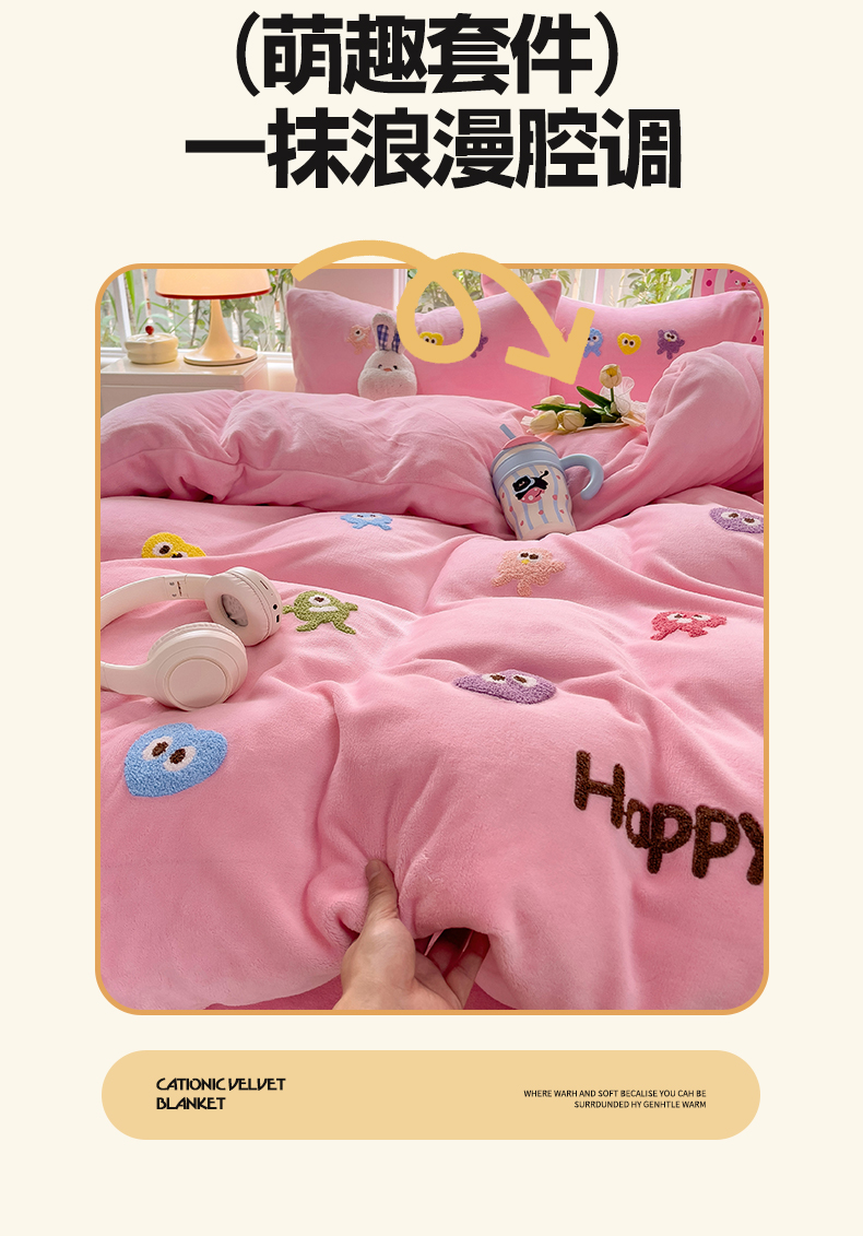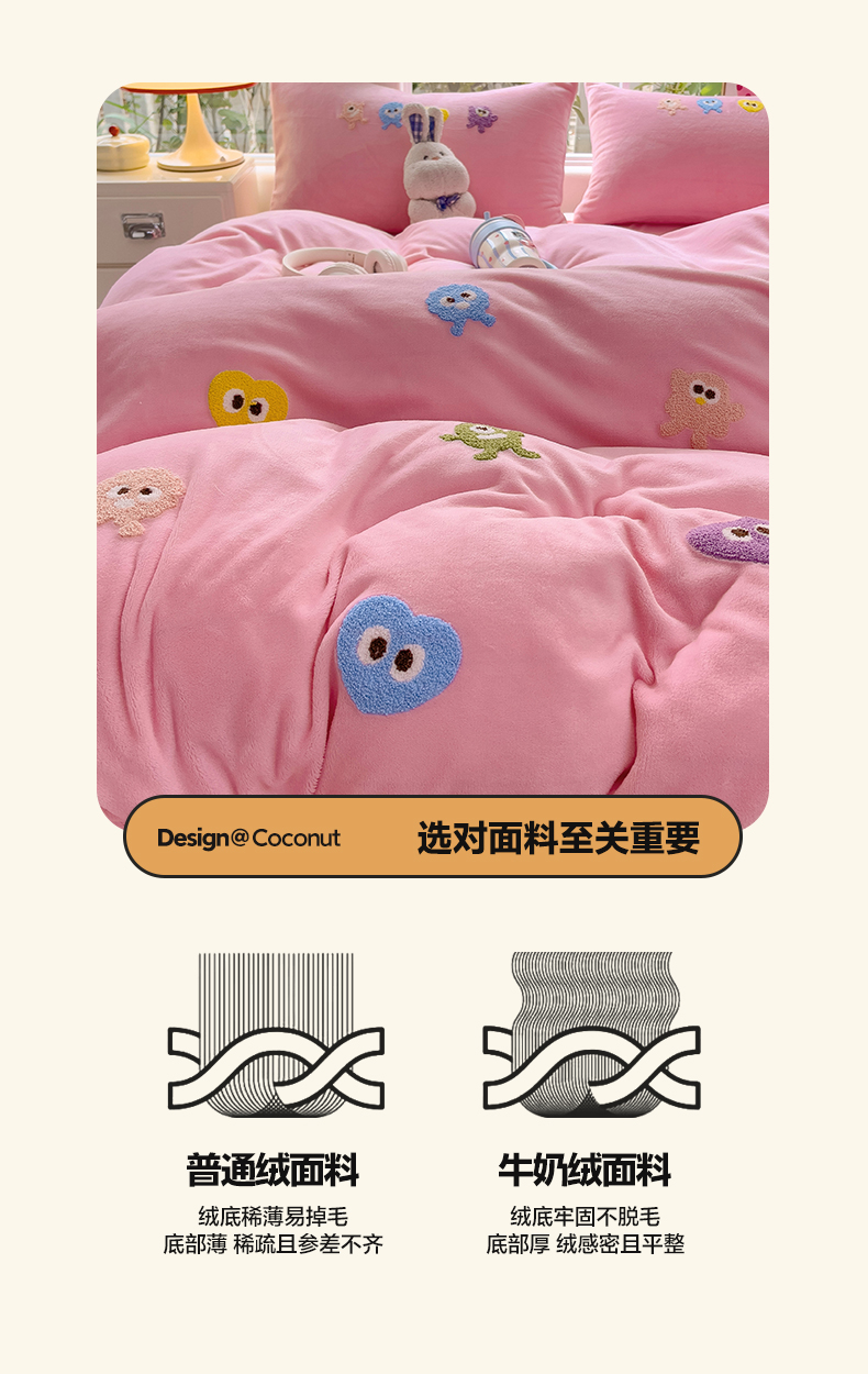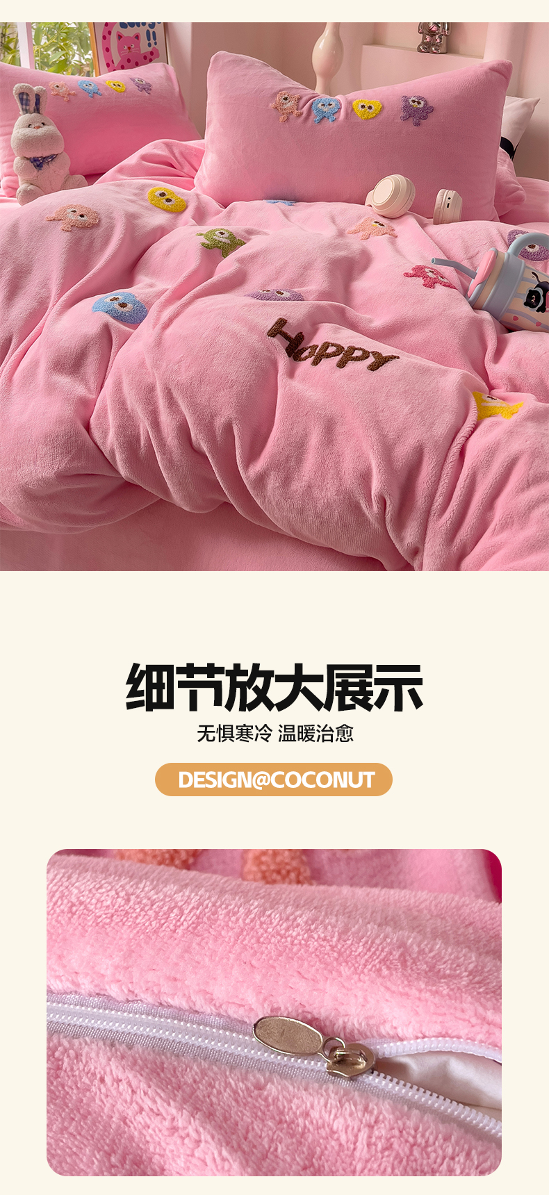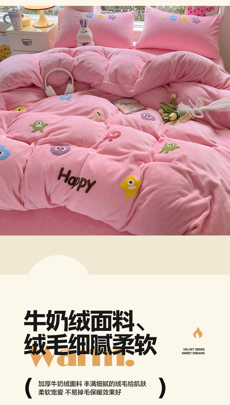 水墨江南 2024新款怪兽绒系列牛奶绒毛巾绣四件套 怪兽绒-玫粉