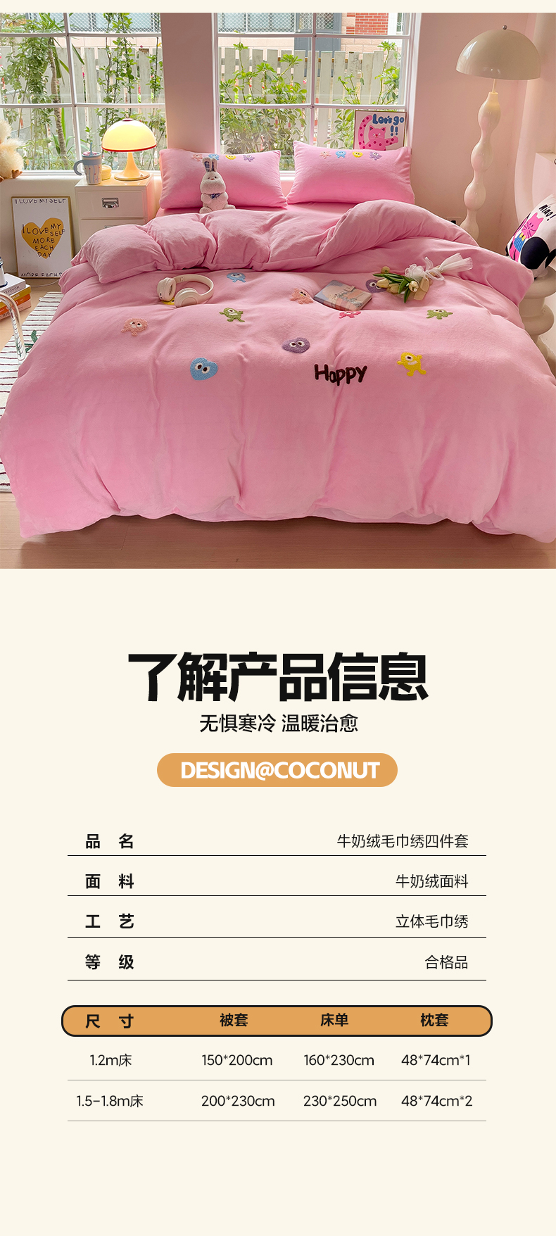 商品名称:水墨江南 2024新款怪兽绒系列牛奶绒毛巾绣四件套 怪兽绒-玫粉