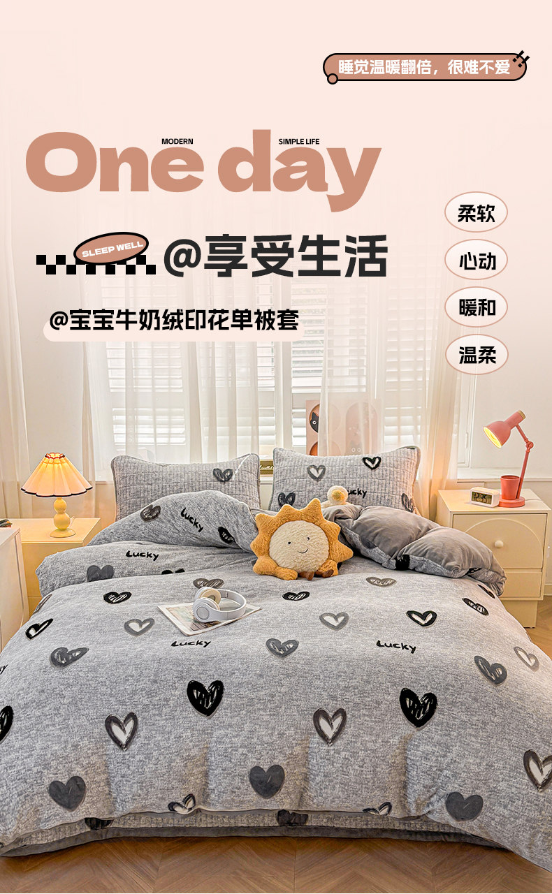 喜居 2024新款宝宝牛奶绒印花单被套 幸运心