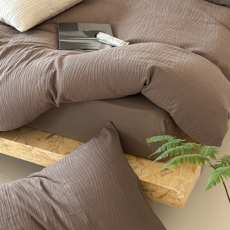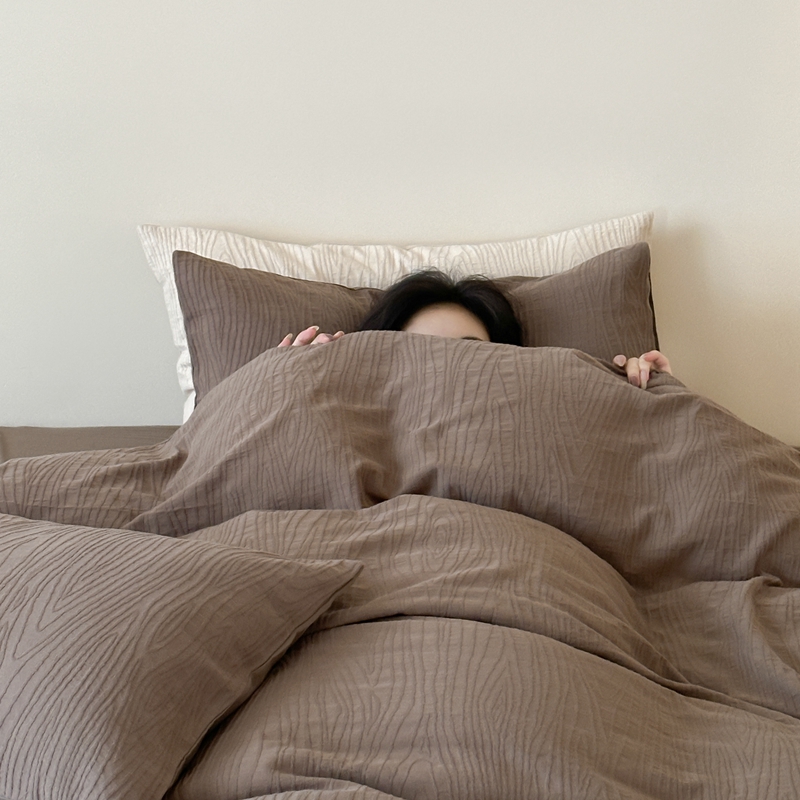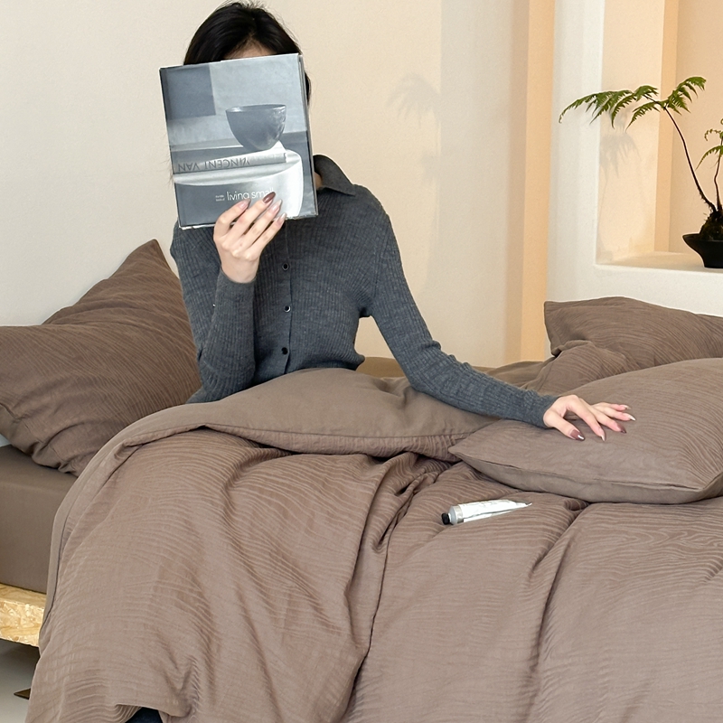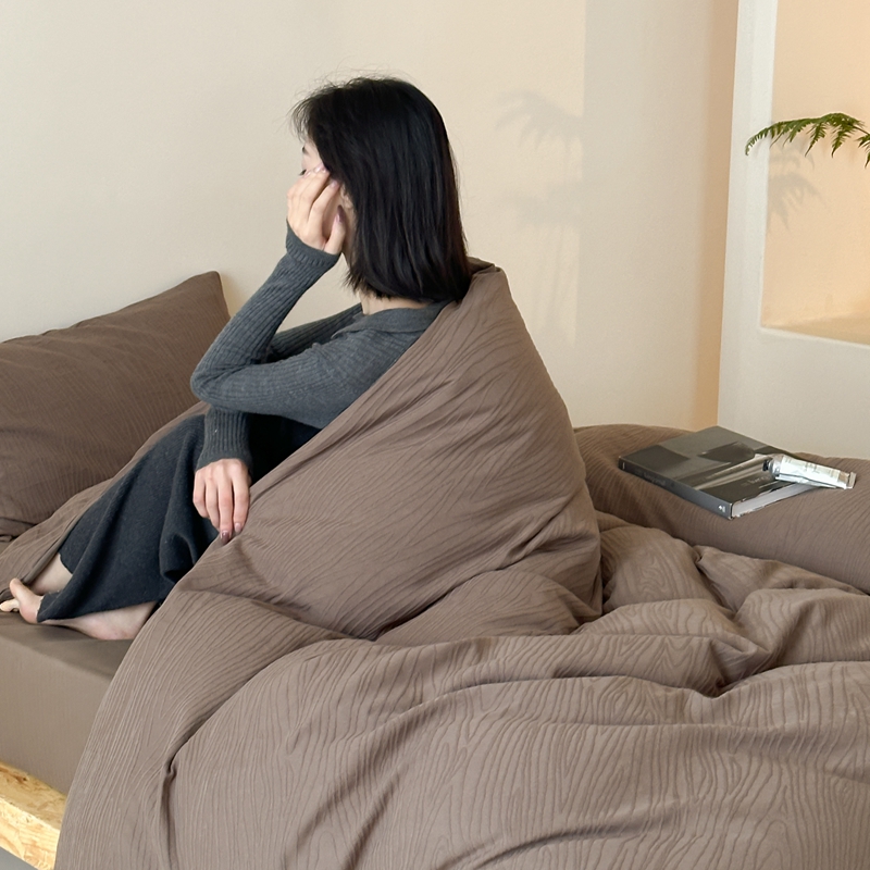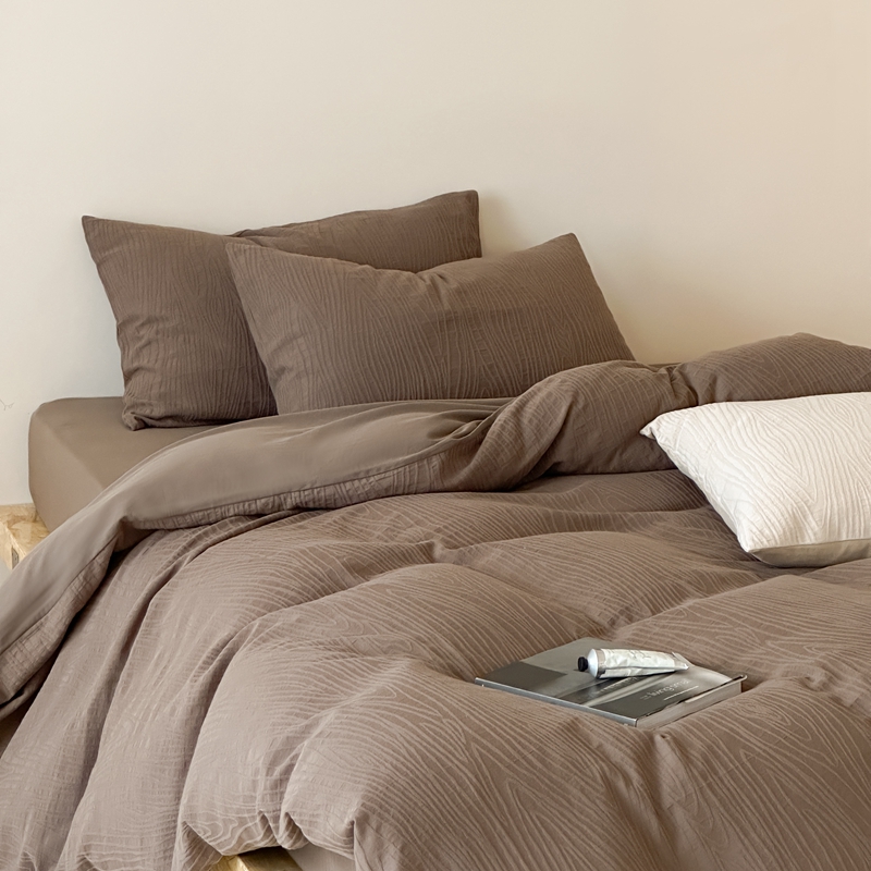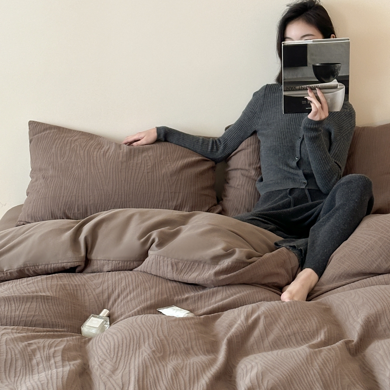 梦享生活家居 2024新款全棉提花树皮纹系列四件套 提花树皮纹-巧克力