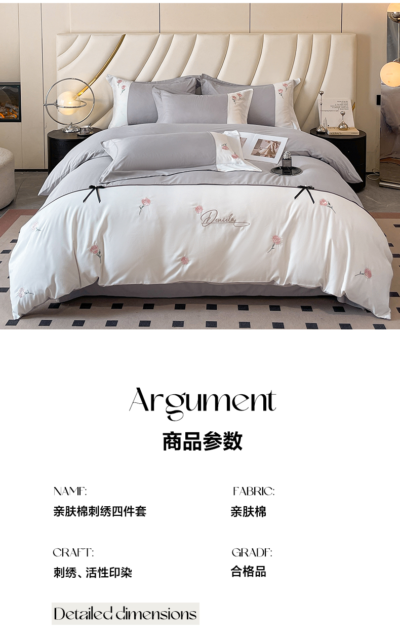商品名称:遇见家居生活馆 2024新款亲肤棉刺绣四件套-蝶恋花 蝶恋花-浅灰