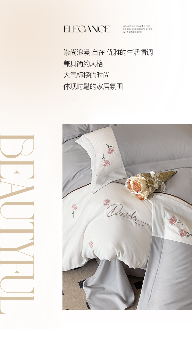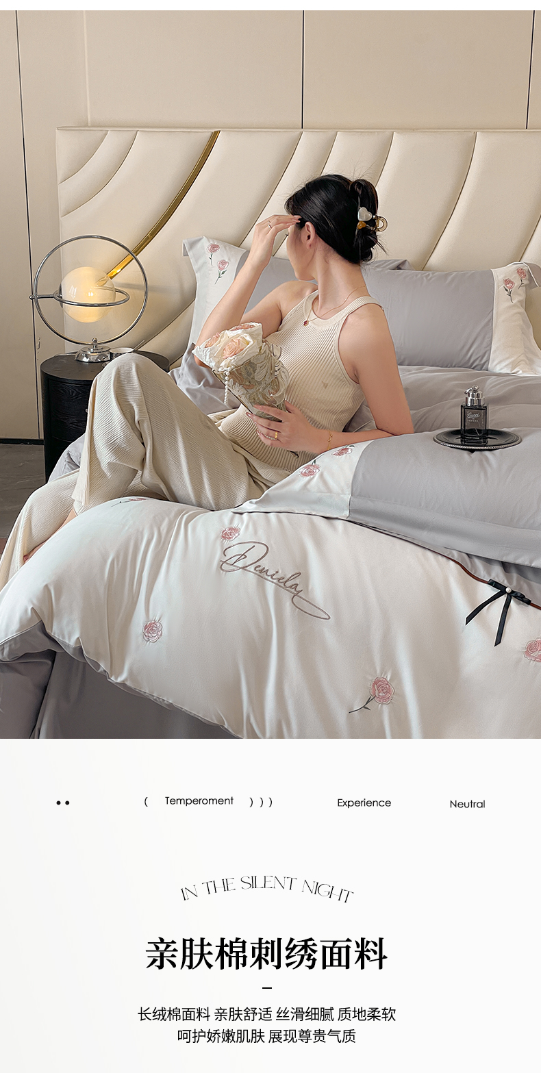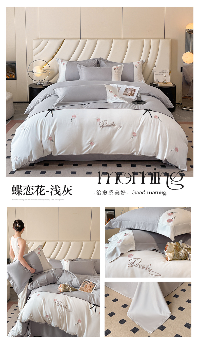 遇见家居生活馆 2024新款亲肤棉刺绣四件套-蝶恋花 蝶恋花-浅灰