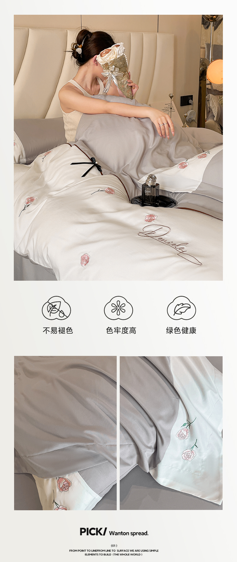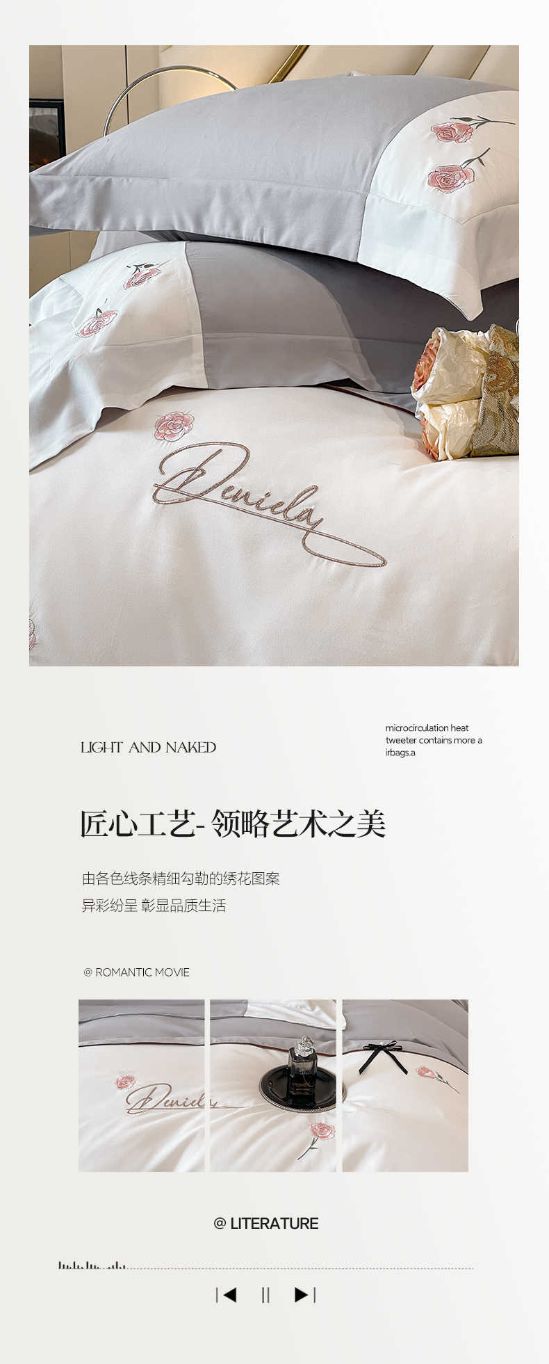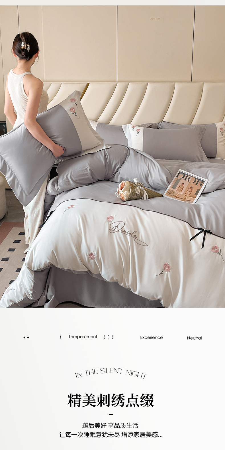 遇见家居生活馆 2024新款亲肤棉刺绣四件套-蝶恋花 蝶恋花-浅灰