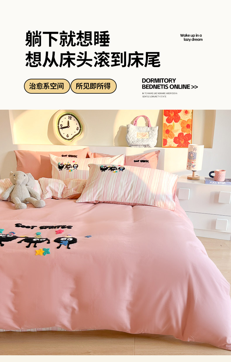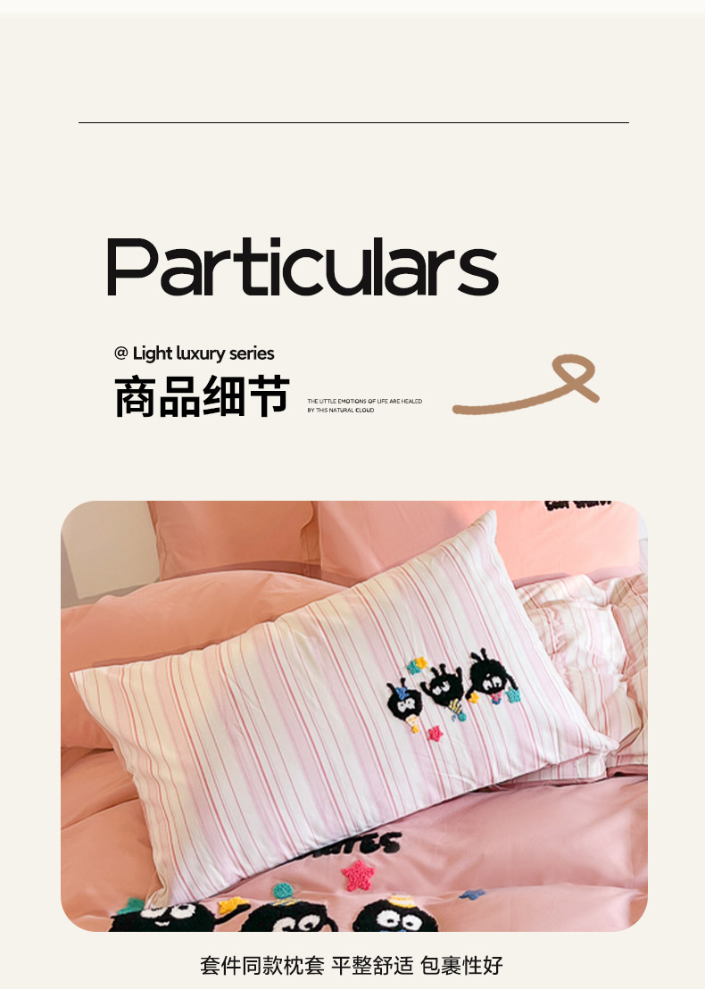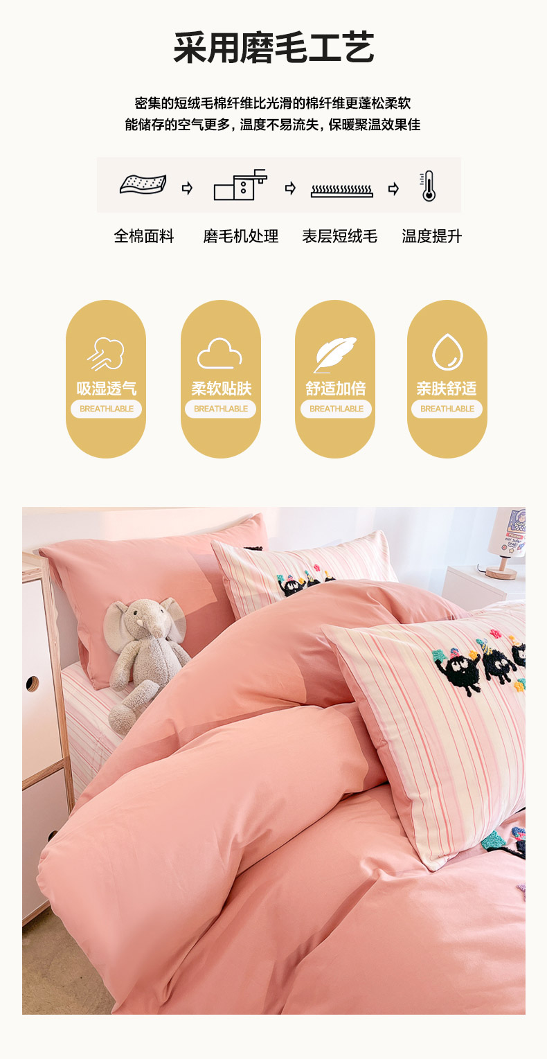 商品名称:千朵 2024新款全棉磨毛绣花毛巾绣四件套 粉色小煤球