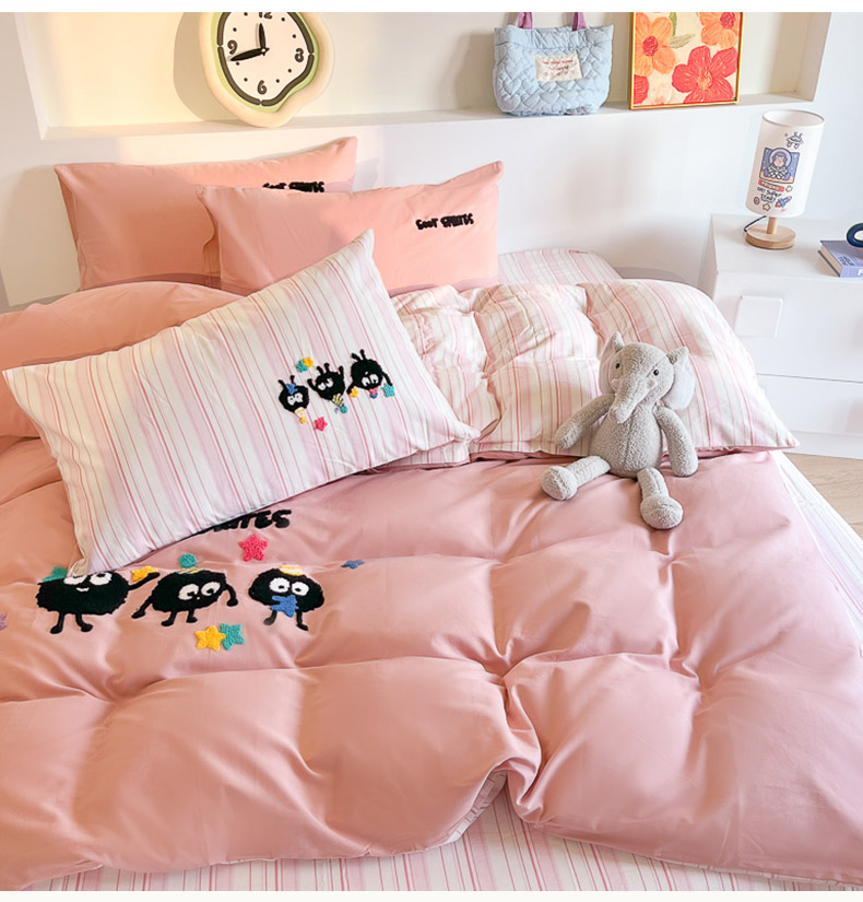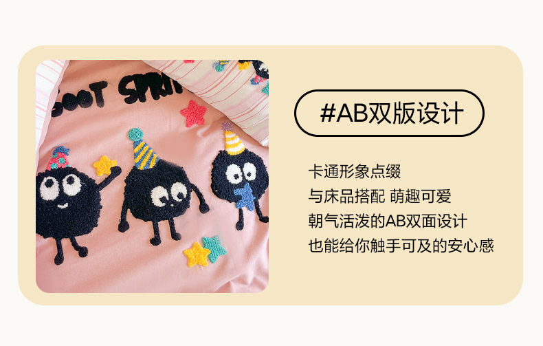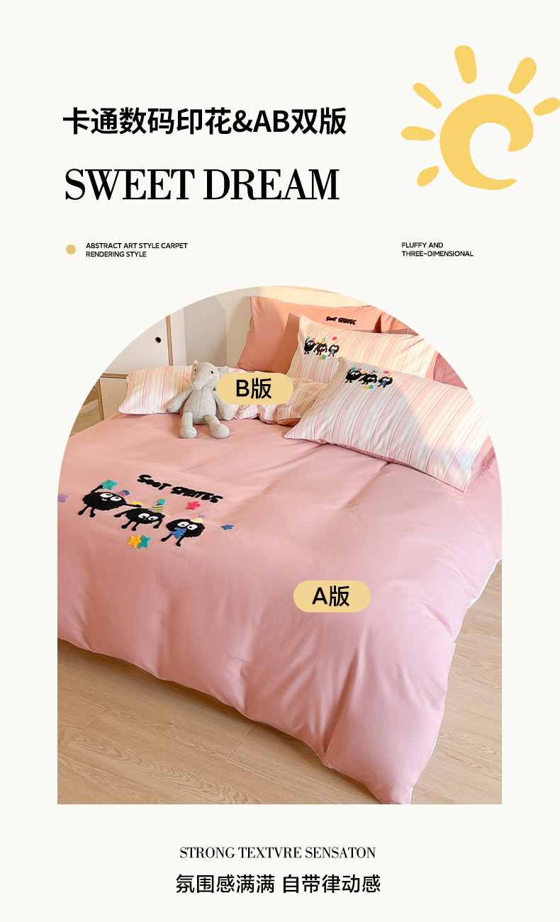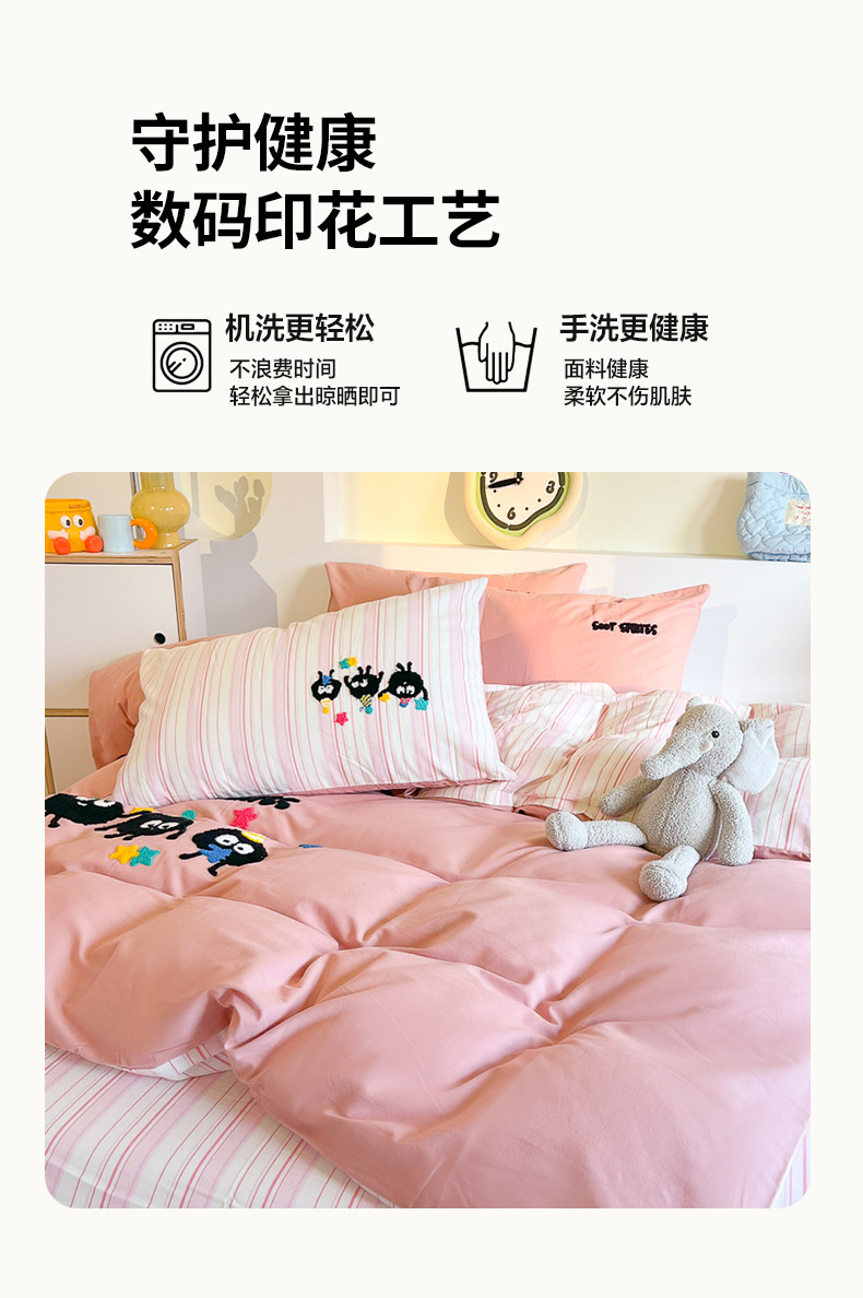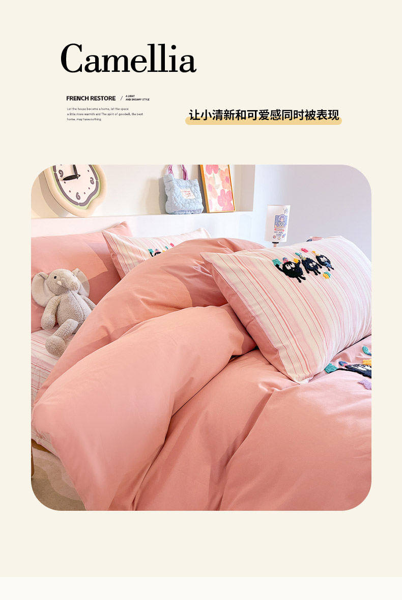 商品名称:千朵 2024新款全棉磨毛绣花毛巾绣四件套 粉色小煤球