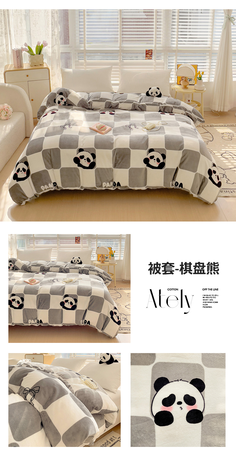 雅萱家纺 2024新款牛奶绒单被套 被套-棋盘熊