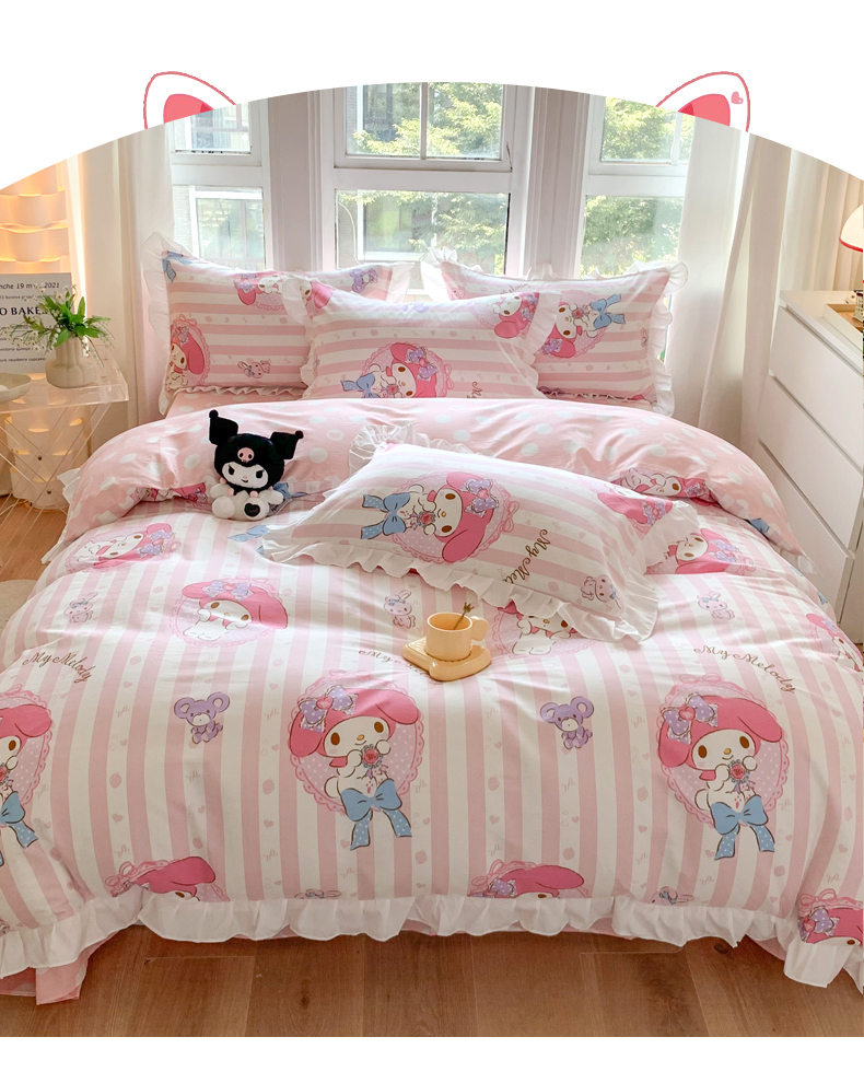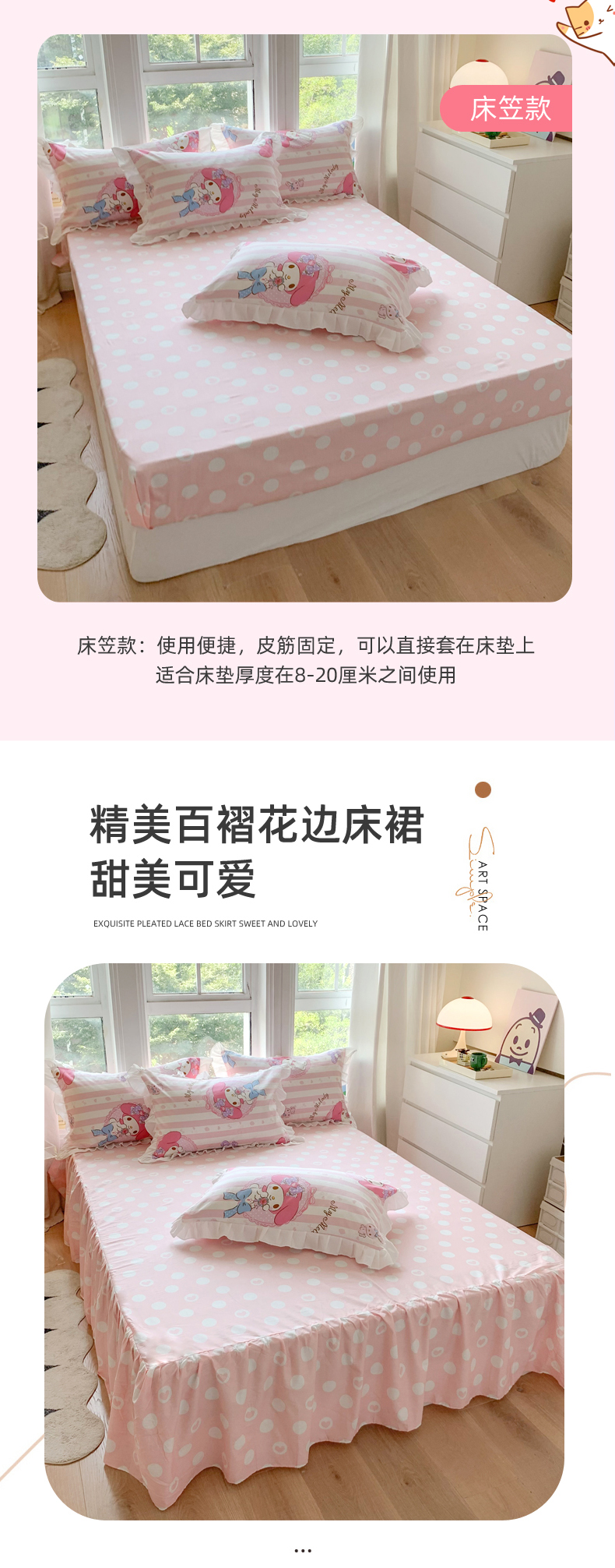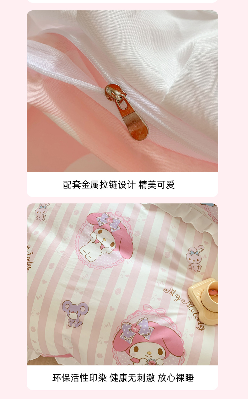 当前位置: 91家纺网 > 商品网购 > 床品套件 > 四件套 > 全棉普通四件套 > 玉元坊 2025新款三丽鸥系列白花边被套纯棉全棉床裙三件套四件套-美乐蒂白花边款式 甜甜美乐蒂【花边款】