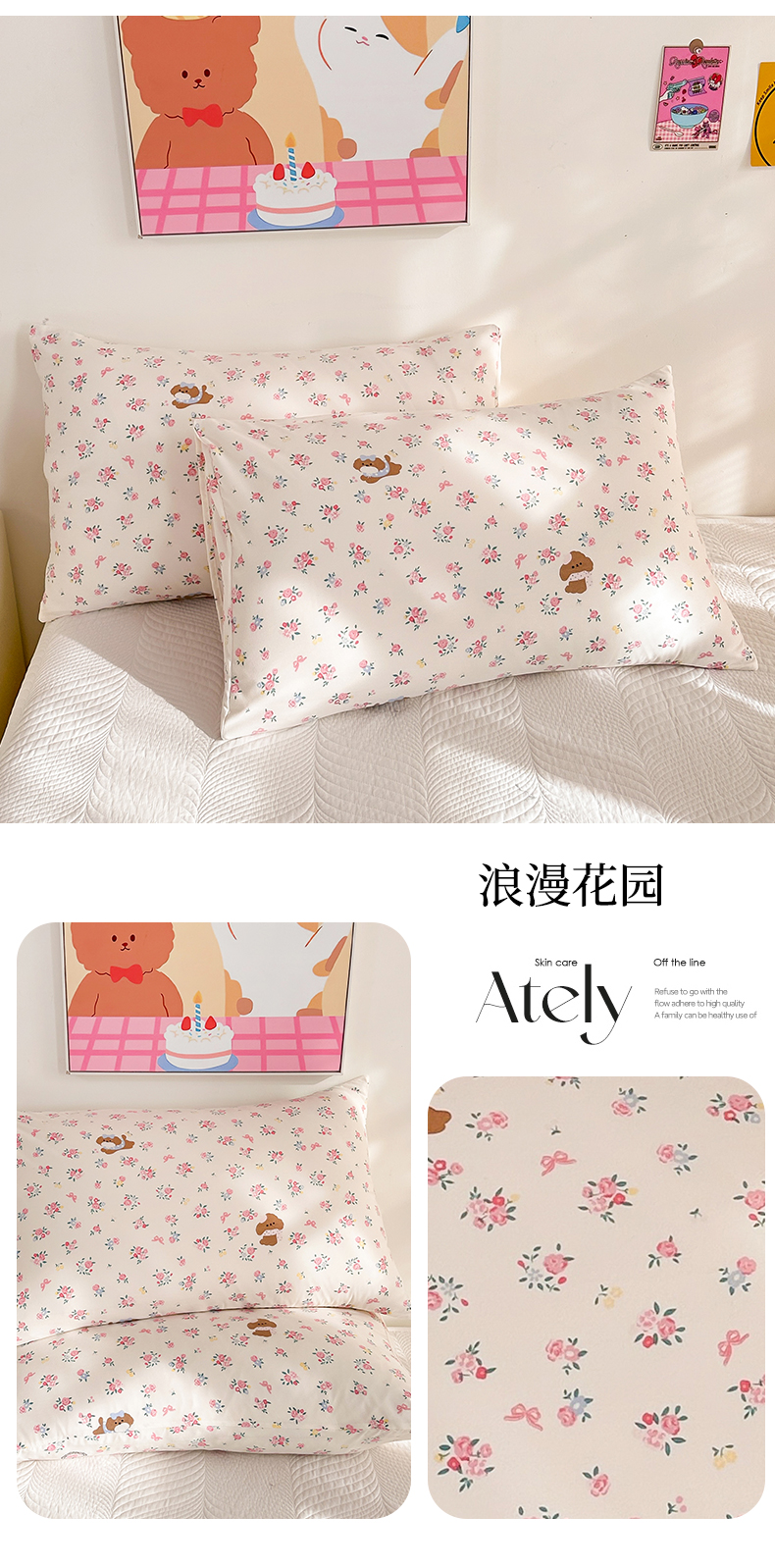 商品名称:多品家纺 2025新款卡通系列柔水洗棉枕套 浪漫花园