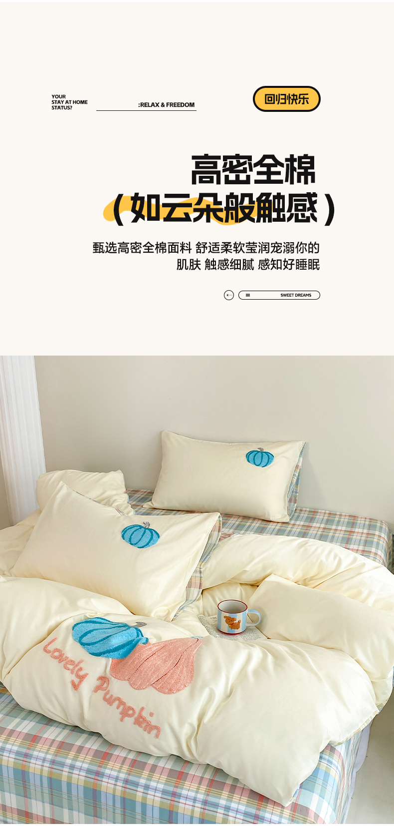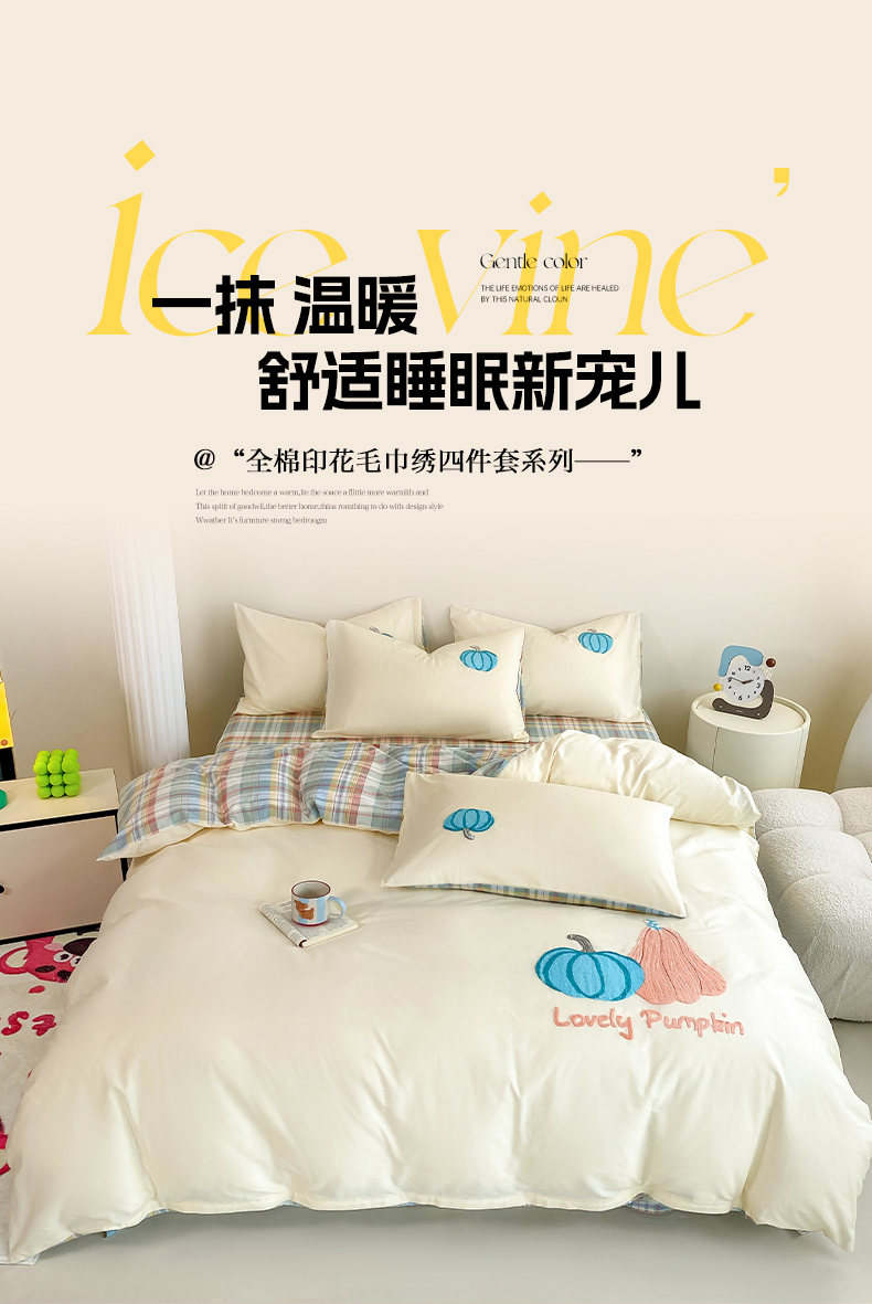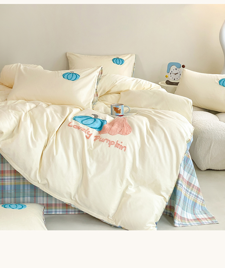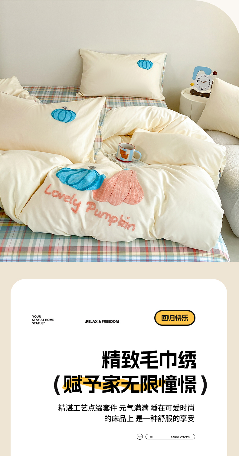 沐辰 2025新款全棉13372印加绣四件套 福福南瓜