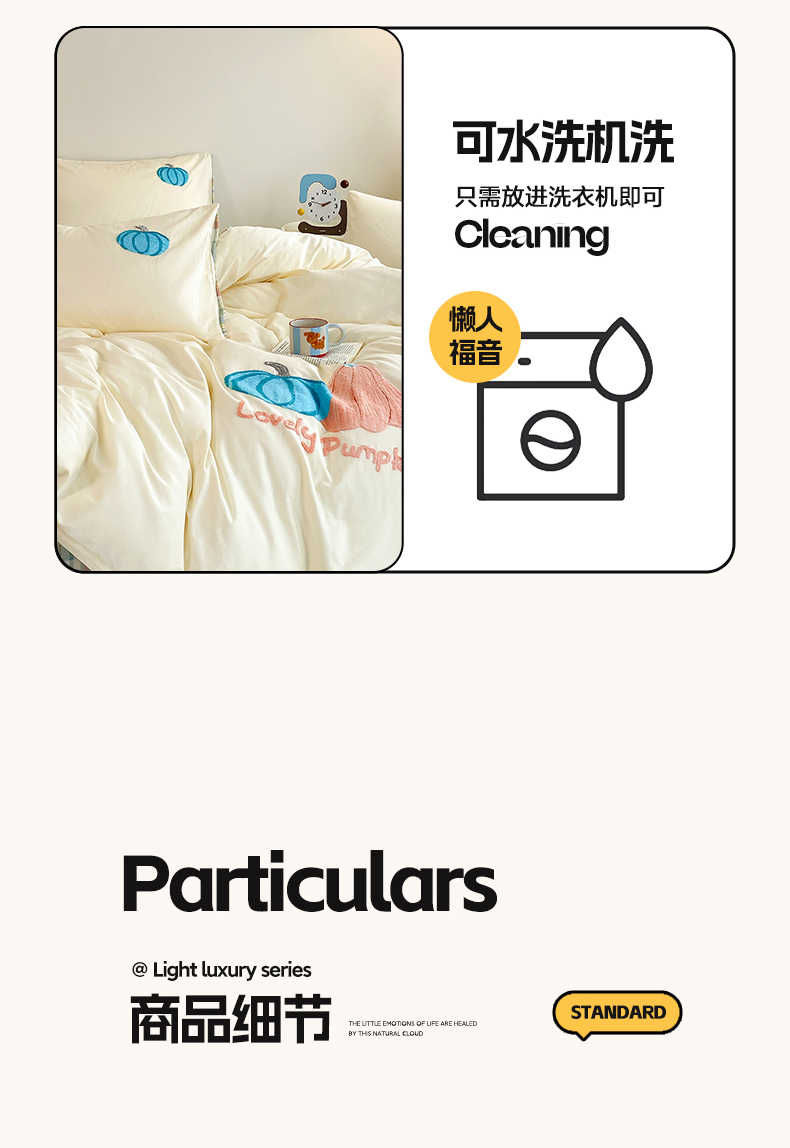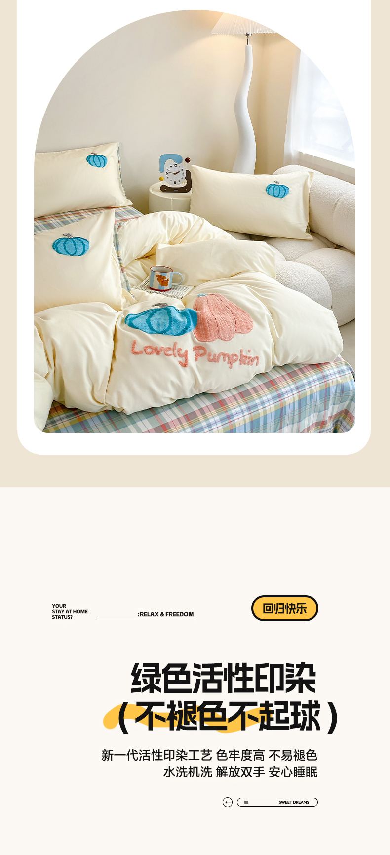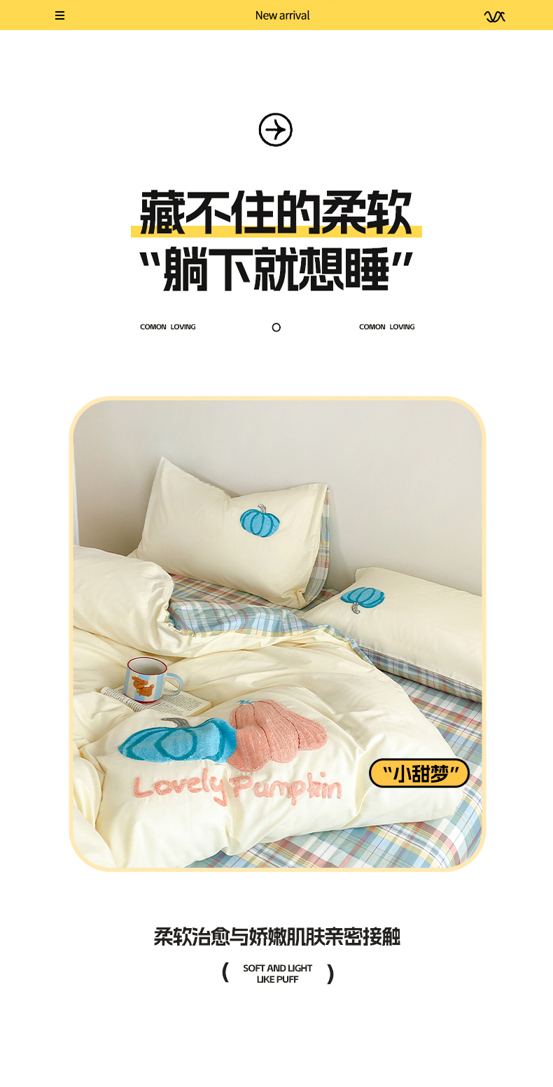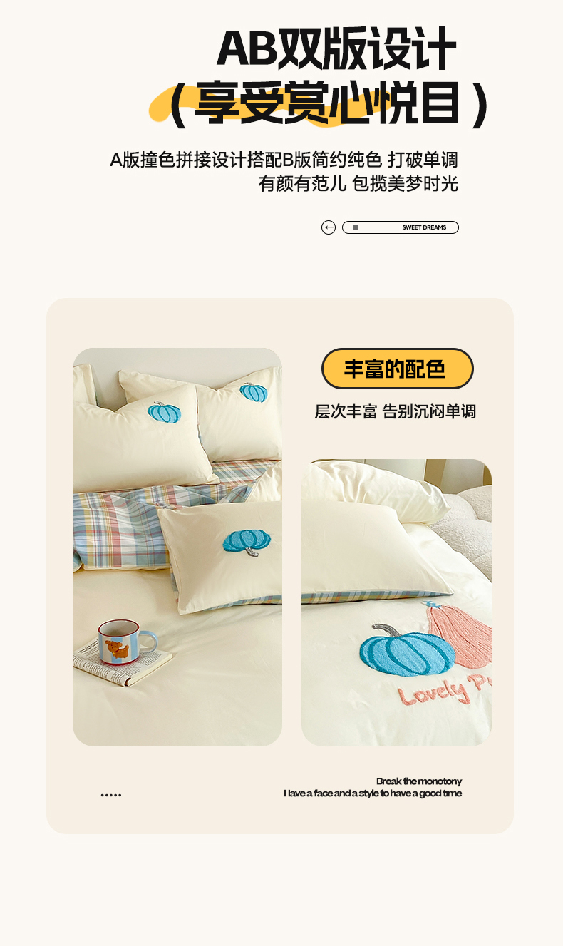 商品名称:沐辰 2025新款全棉13372印加绣四件套 福福南瓜