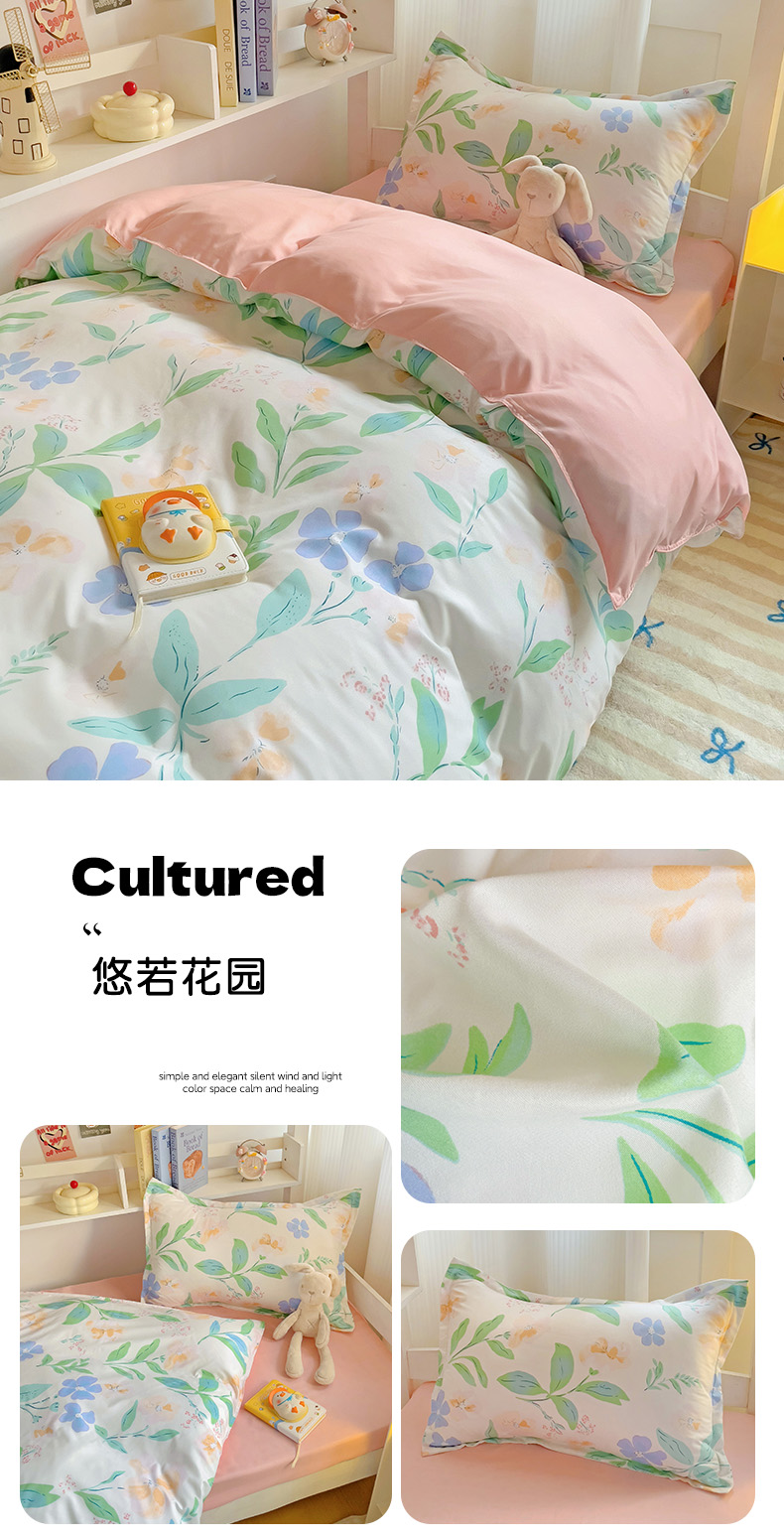 港岛妹妹 2024新款芦荟棉印花四件套四件套学生床宿舍图悠若花园