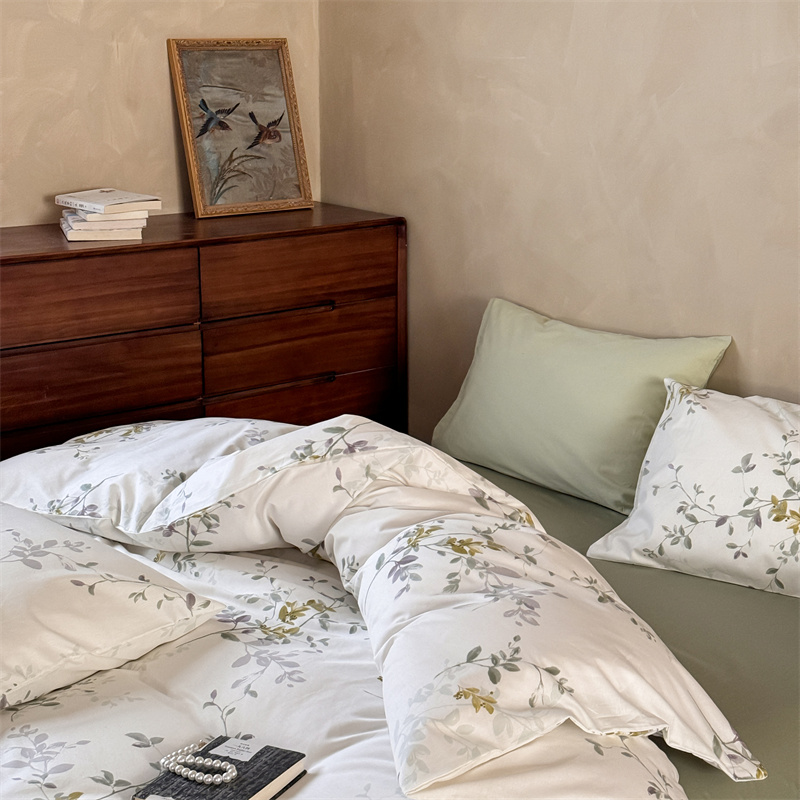 当前位置: 91家纺网 > 商品网购 > 床品套件 > 四件套 > 全棉普通四件套 > 窝米 2025春季新品全棉13370系列全棉治愈风花卉系列四件套 写意绿