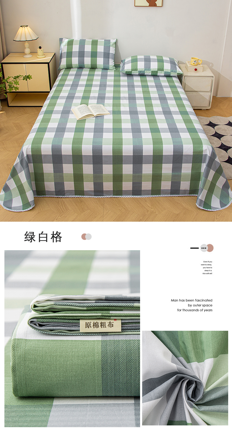 商品名称:金泰莱 2025新款五幅段床单 绿白格