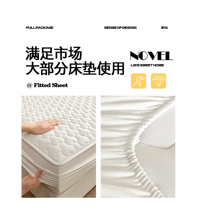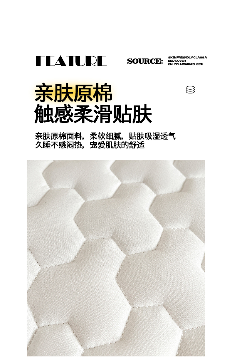 商品名称:迪梦思家纺 2025新款A类亲肤原棉夹棉床笠-蜂窝 蜂窝-雪白