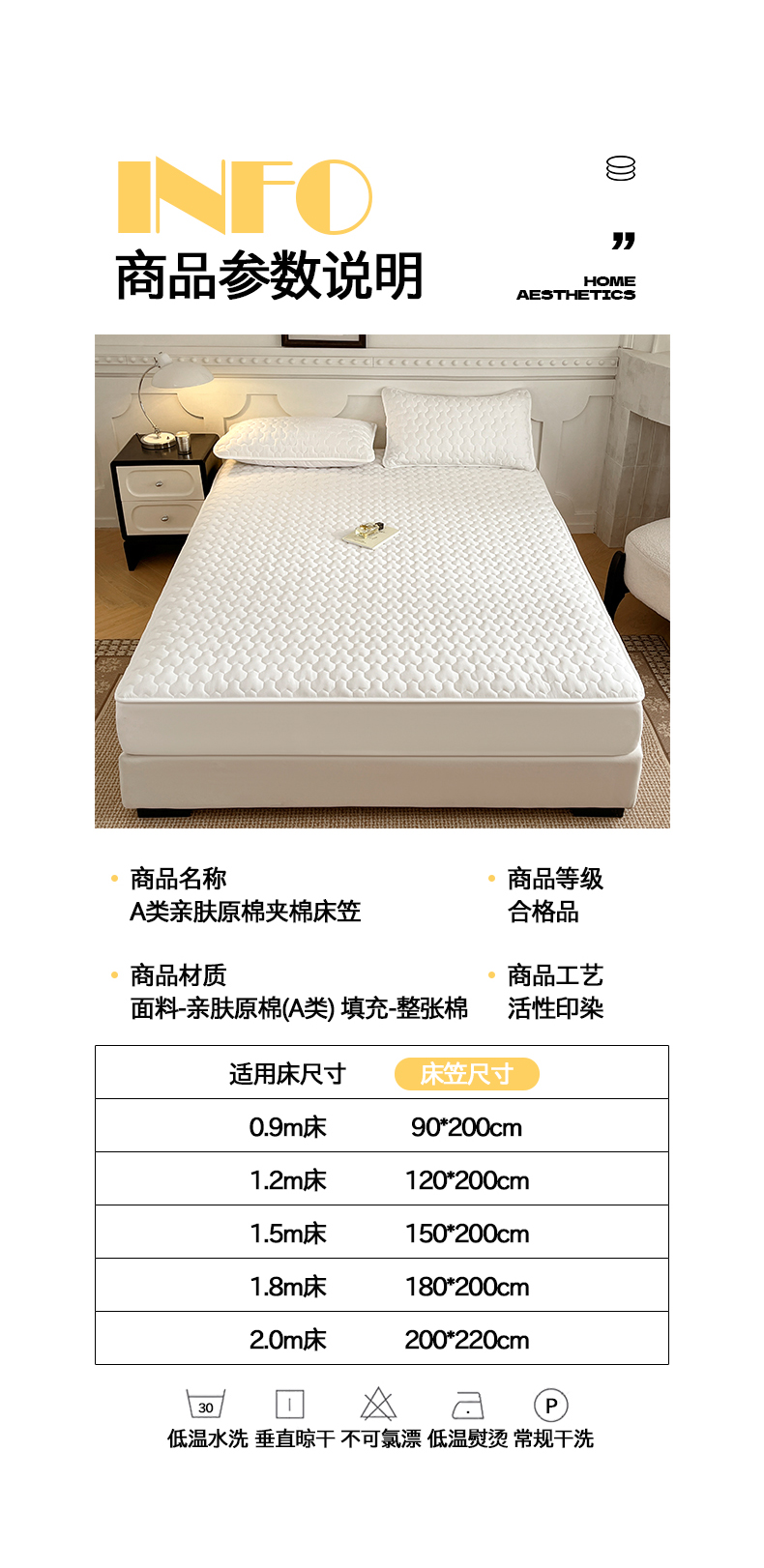 (总)迪梦思家纺 2025新款A类亲肤原棉夹棉床笠-蜂窝,蜂窝-豆绿,蜂窝-卡其,蜂窝-浅玉,蜂窝-雪白,蜂窝-银灰