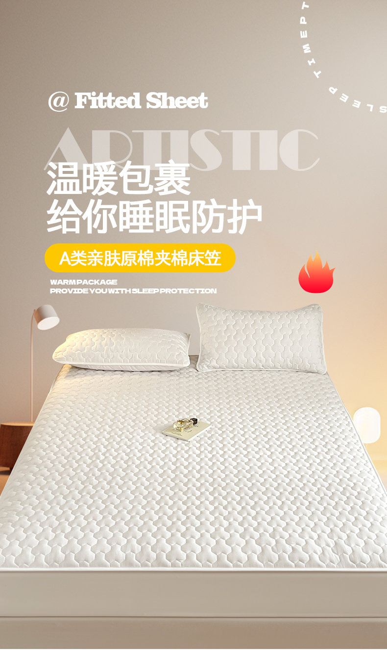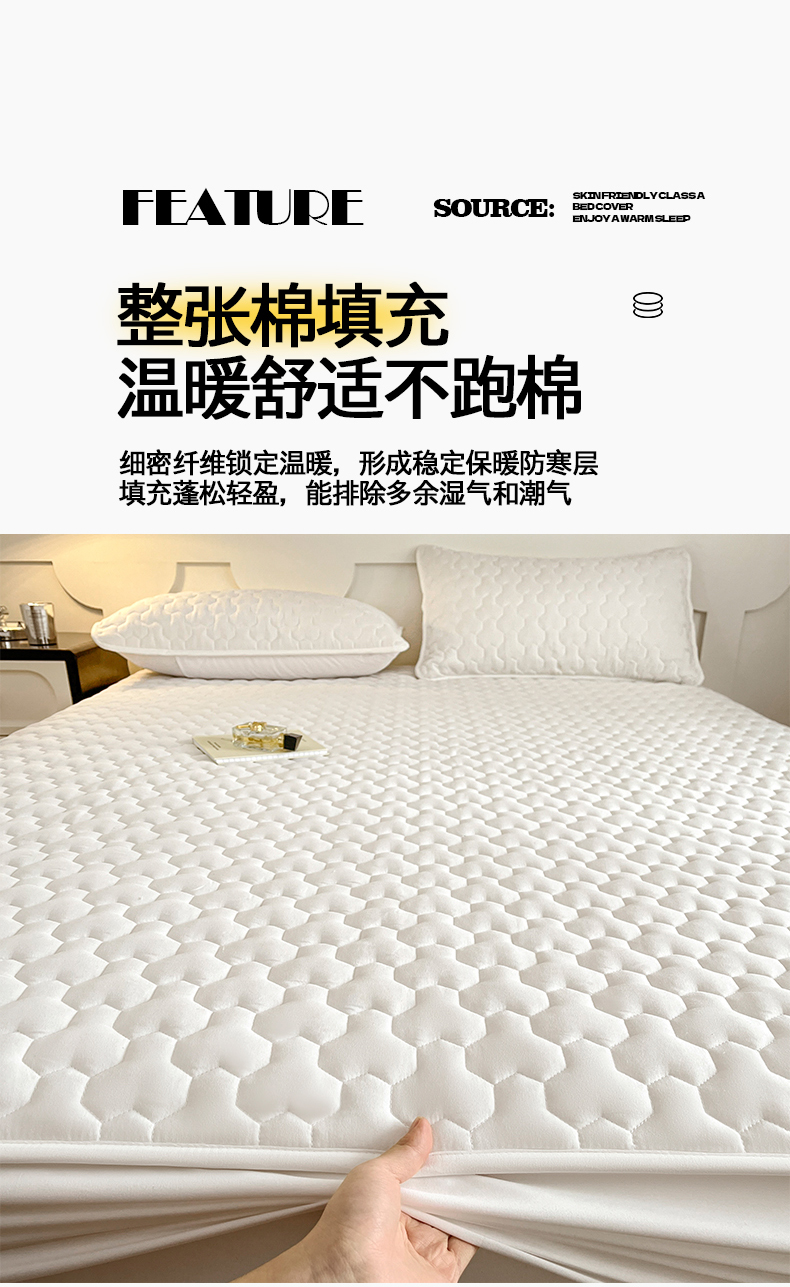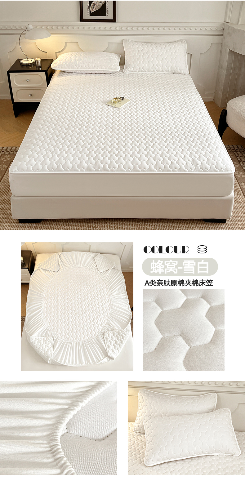 迪梦思家纺 2025新款A类亲肤原棉夹棉床笠-蜂窝 蜂窝-雪白
