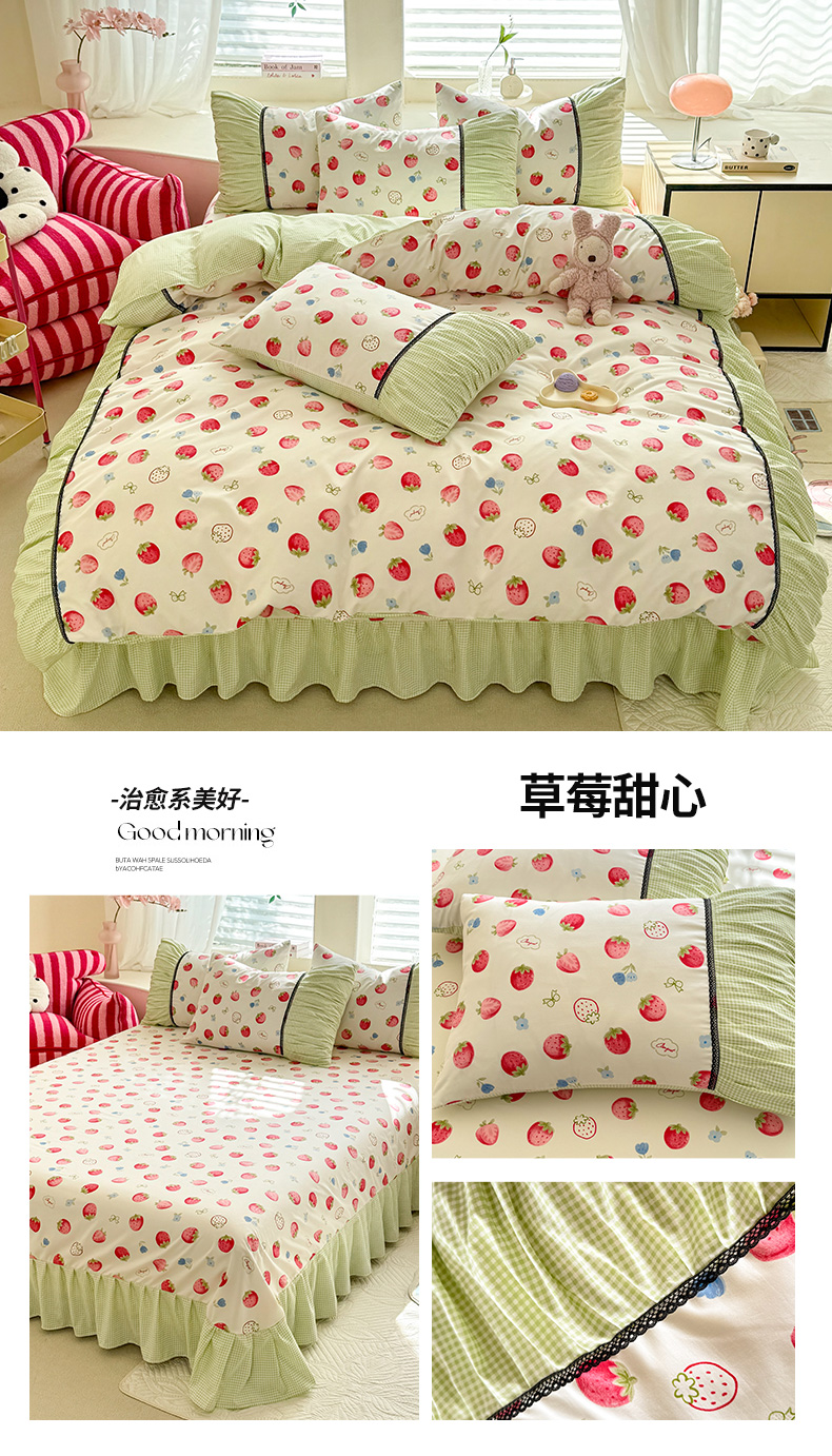 商品名称:芭比蔓家纺 2025新款磨毛法式浪漫复古四件套 草莓甜心