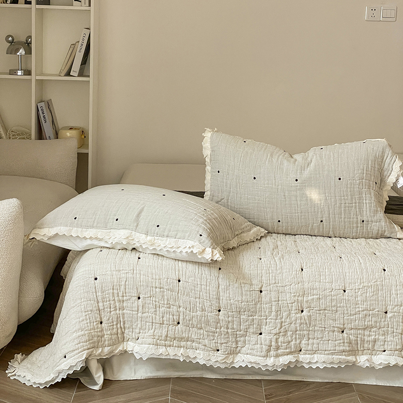 (总)麻依 2025新款韩国清新全棉纱布床盖三件套,憨憨熊,彩色南瓜,车厘子,两颗草莓,奶盖KT,奶油波点-灰,奶油彩点,水蓝KT,水墨花,丝带,桃心-米白,小猫鱼