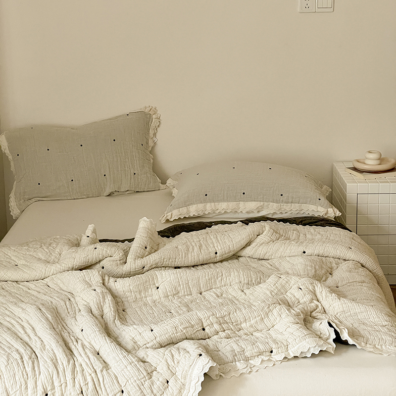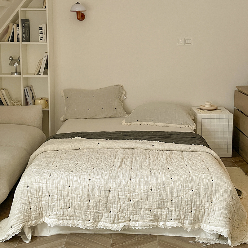 麻依 2025新款十层纱布棉花糖春秋被被子泡芙被 点点-白